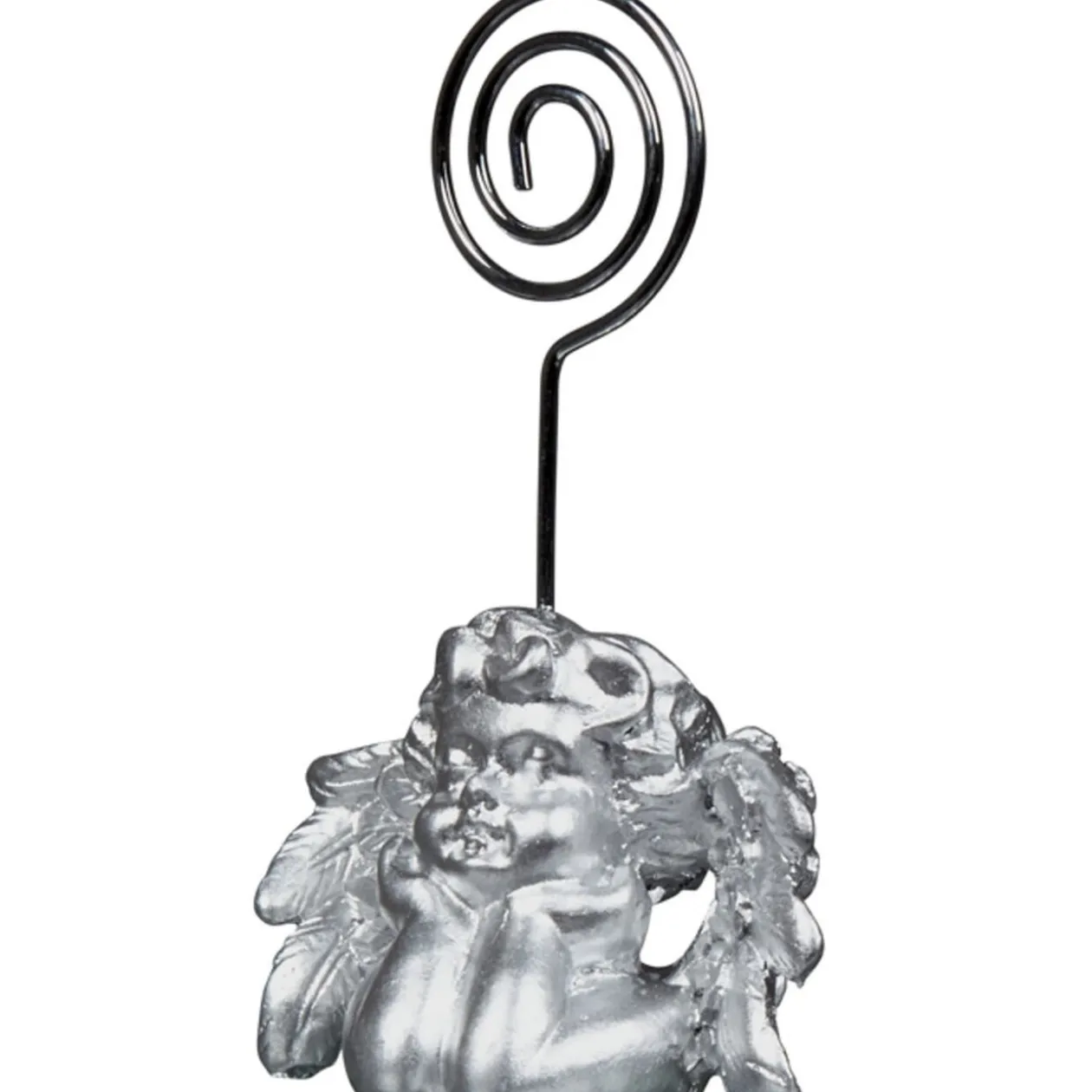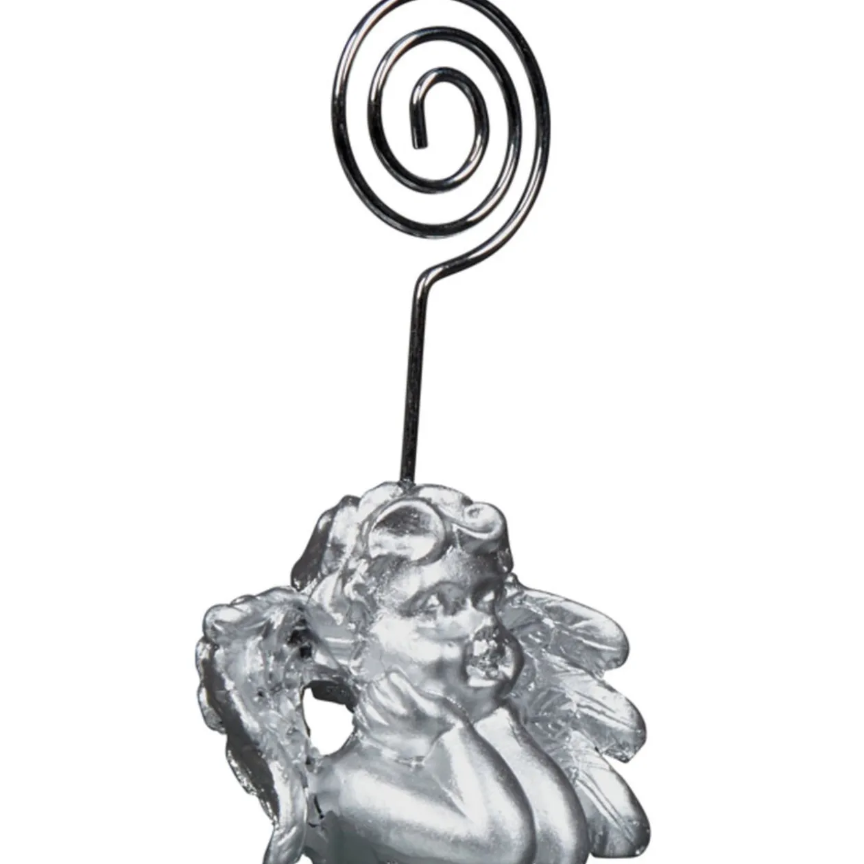 Ange marque-place argenté, dim. h.9,5×5,5 cm, métal et résine. Peut s’utiliser en décoration de table ou marque-place pour mariage, baptême ou autre évènement.
