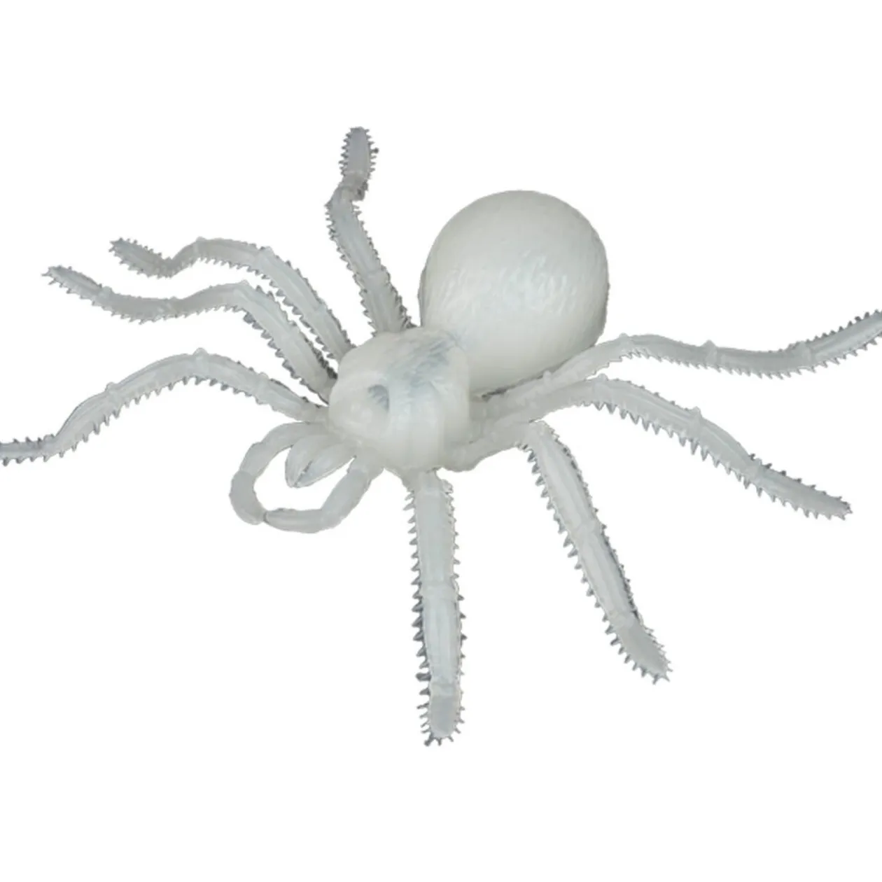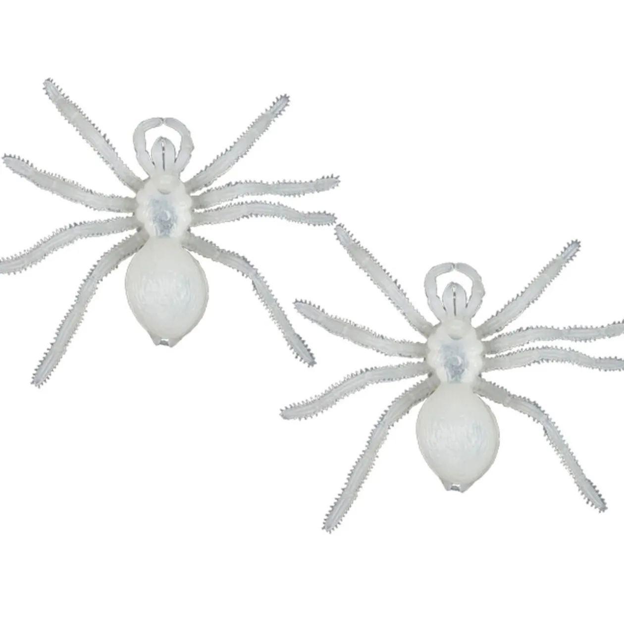 2 araignées blanches phosphorescentes Halloween, dim. 12×17 cm, polyéthylène.