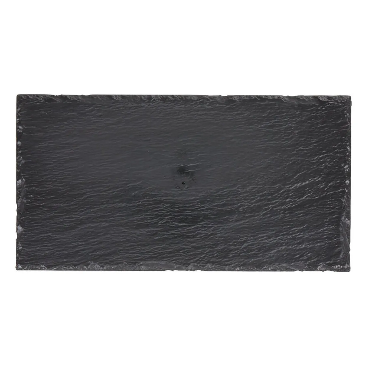 Lot de 6 assiettes rectangulaires en plastique imitation ardoise noire.