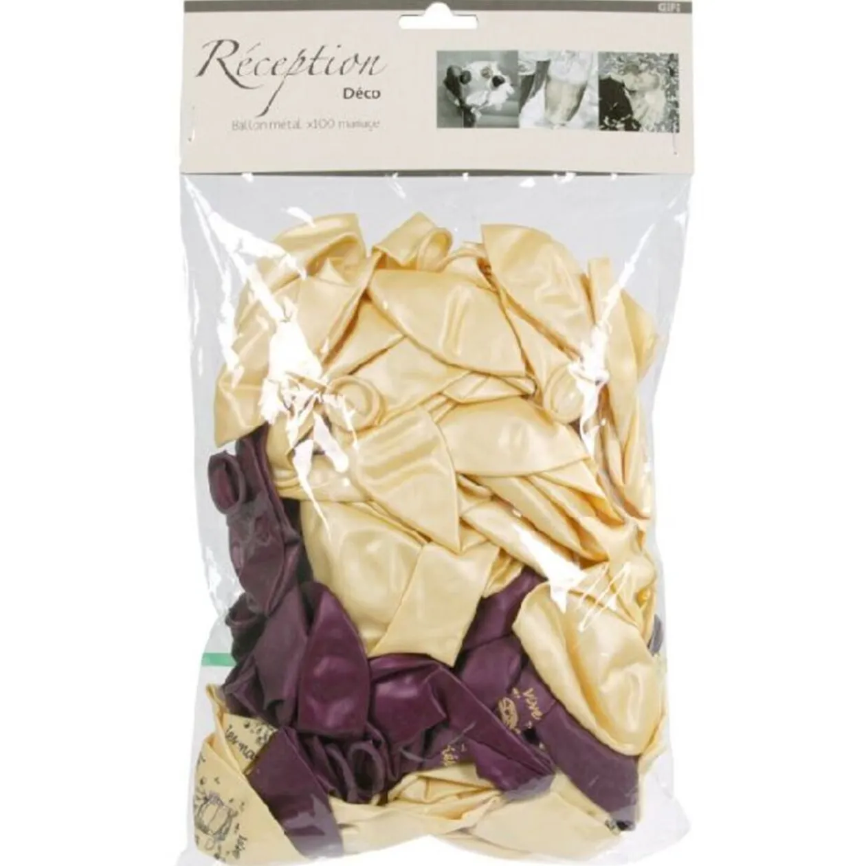 100 ballons « vive les mariés », en latex de caoutchouc naturel, couleur bordeaux et ivoire.