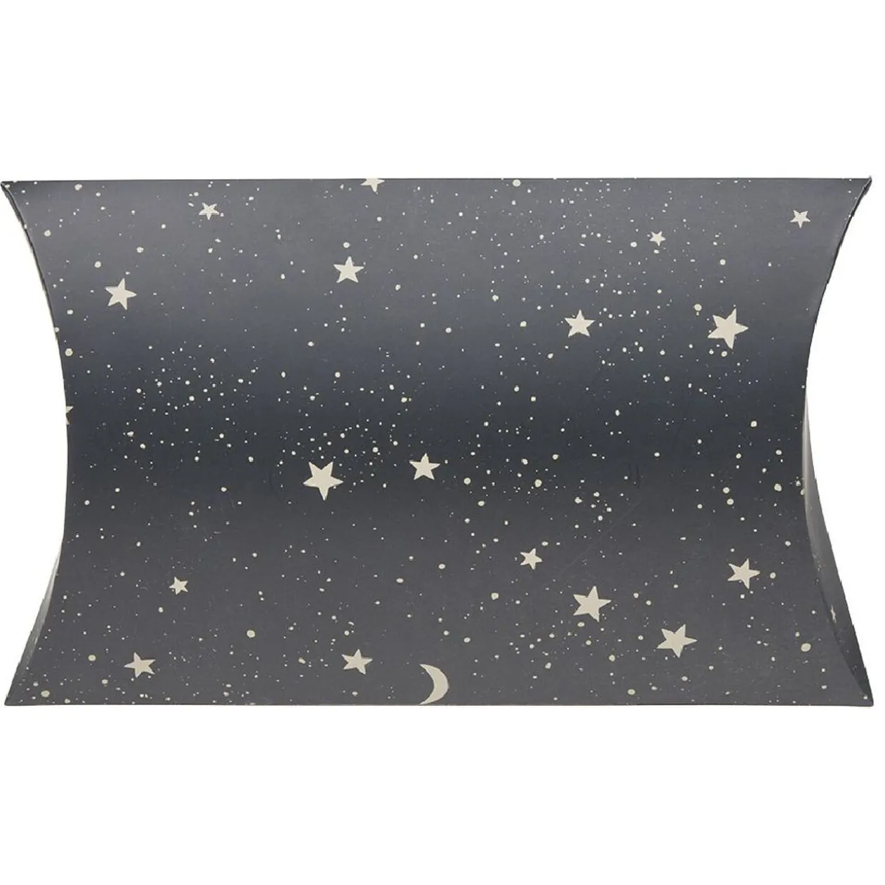Boîte à cadeau berlingot blanche et noire taille L avec des étoiles dorées et des motifs nature pour y insérer vos cadeaux de Noël.