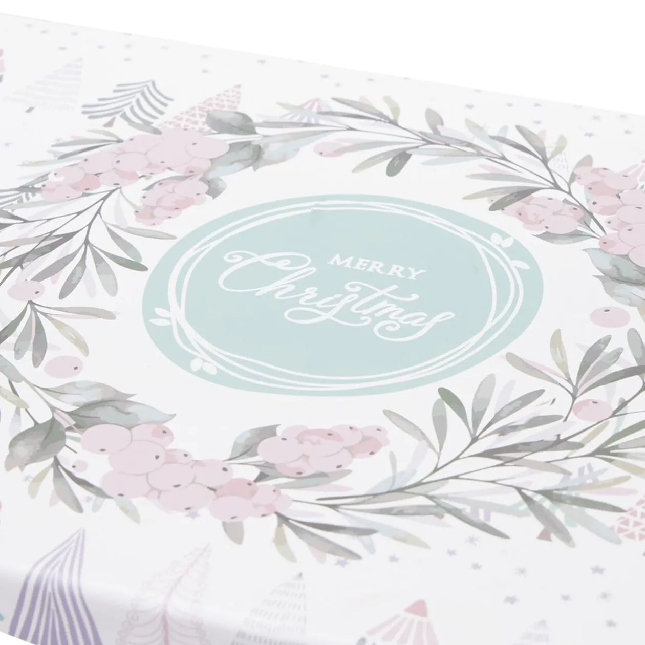 Idéale pour les cadeaux de Noël, cette boîte à motif sapins avec inscription Merry Christmas sur le couvercle fera une délicate attention supplémentaire à son destinataire.