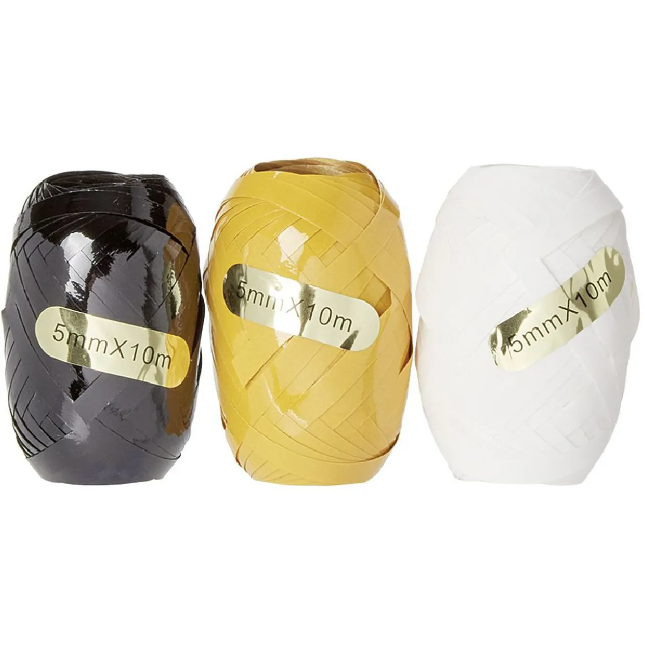 Ensemble de 3 bolducs pour emballer vos cadeaux de Noël dont 1 doré, 1 noir et 1 blanc.