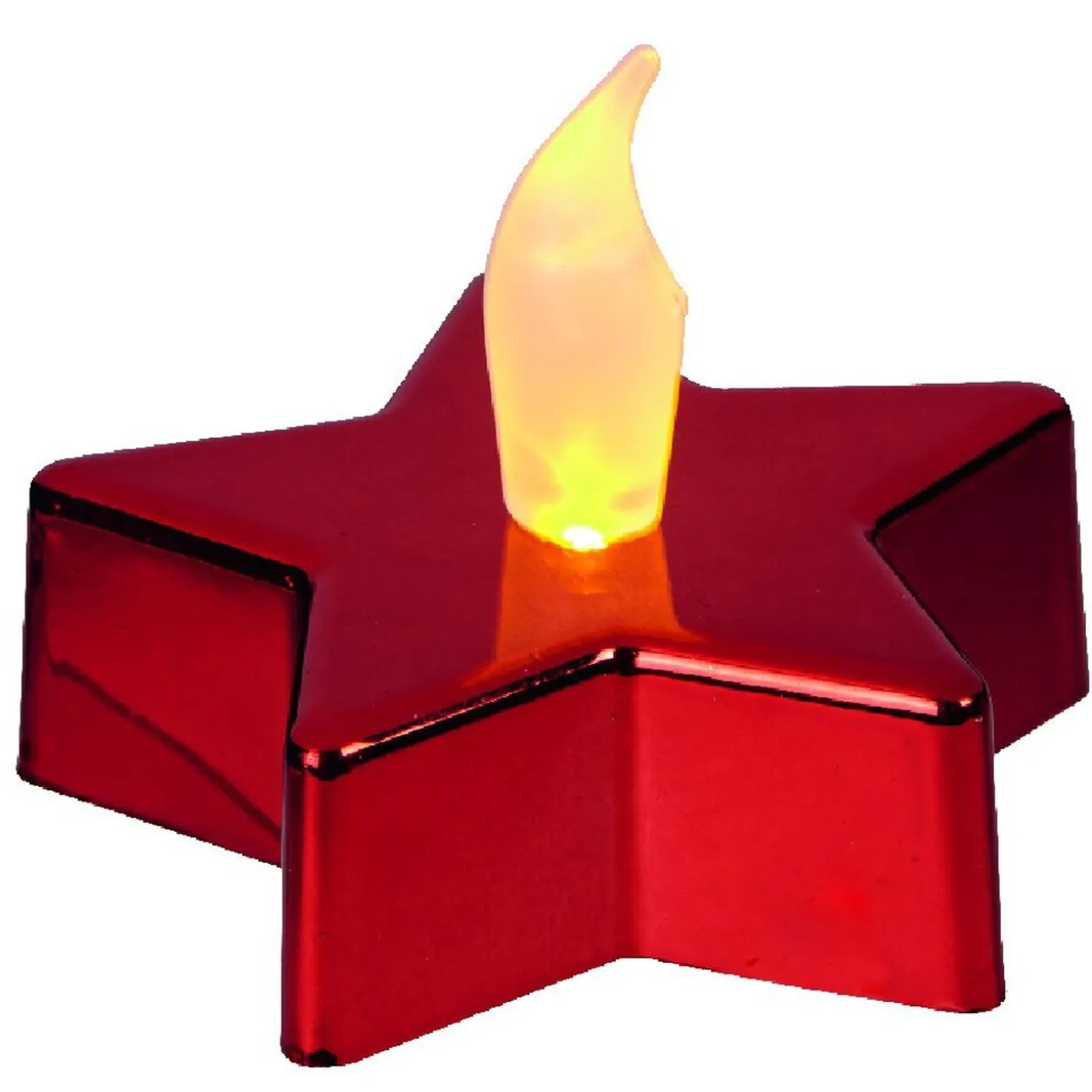 Bougie led étoile rouge, plastique, fonctionne à pile, dim. 5 x 6 cm.