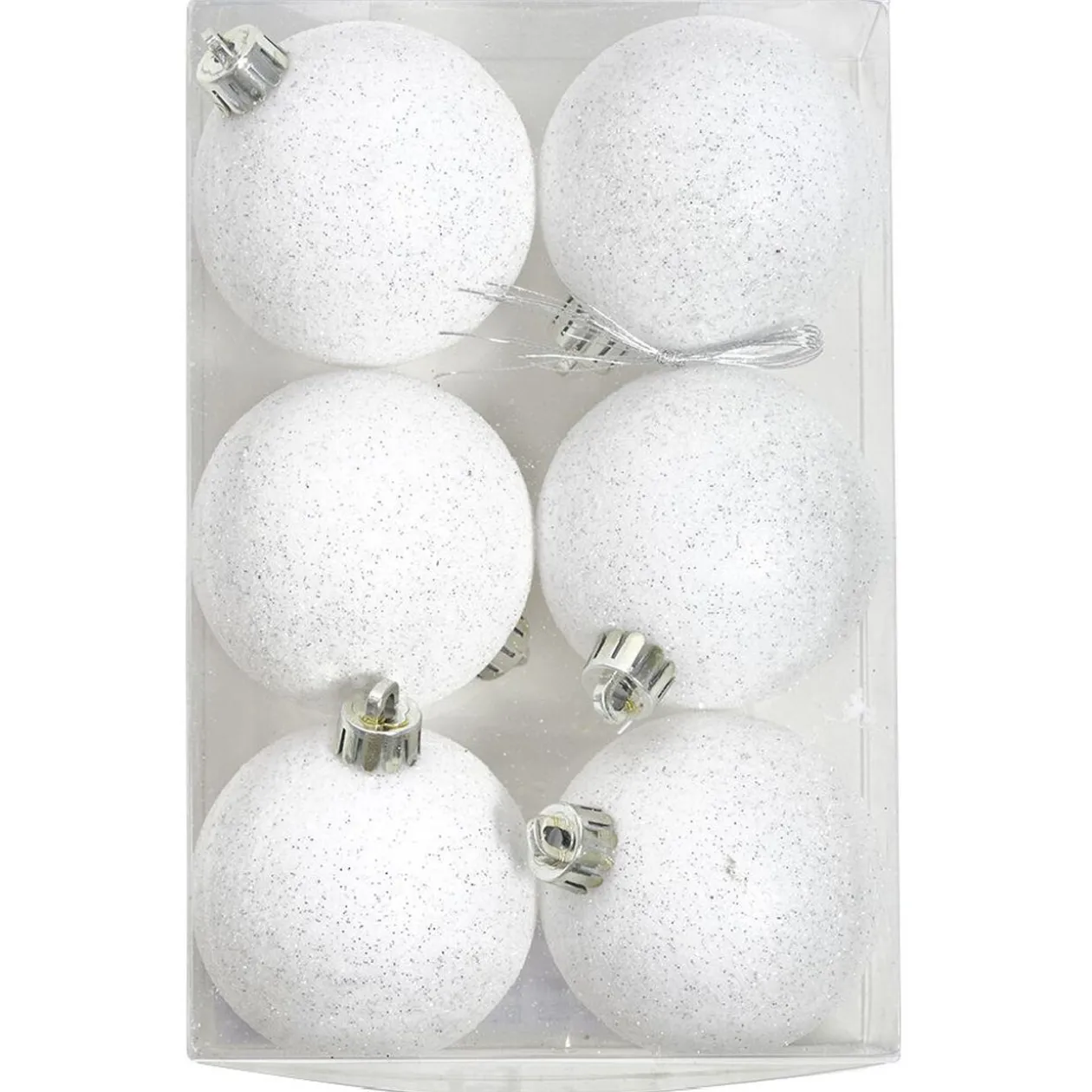 Lot de 6 boules de Noël blanches à paillettes à accrocher sur le sapin et partout ailleurs durant les fêtes.