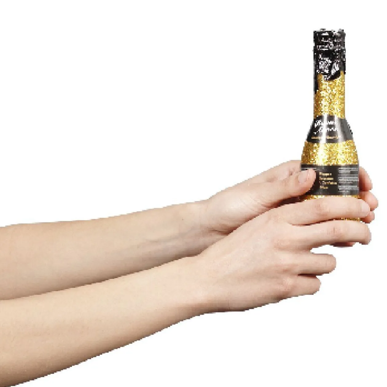 Bouteille à confettis doré forme bouteille H. 16 cm