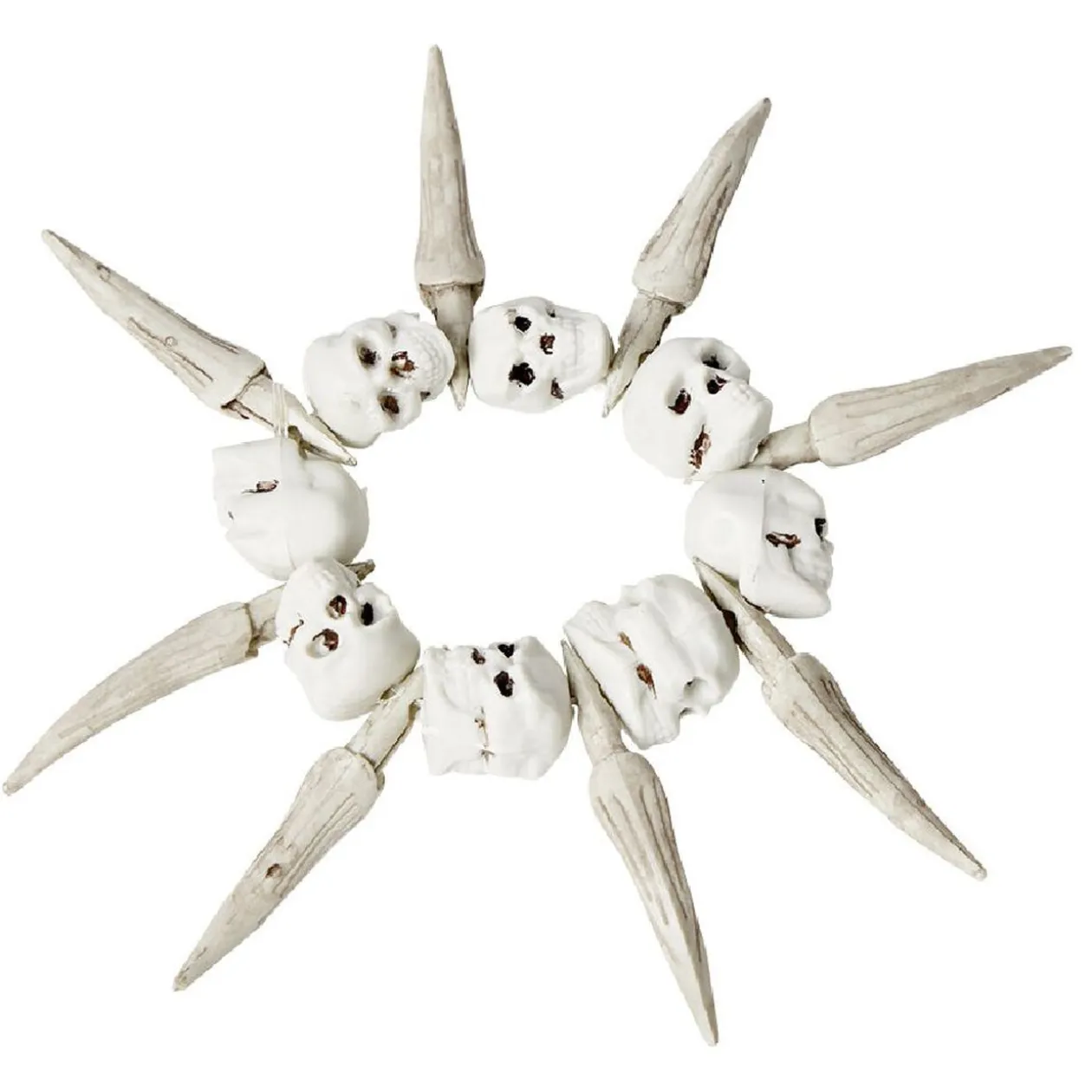 Ce bracelet en plastique agrémenté de crânes couleur os est idéal pour compléter une tenue d’Halloween.
