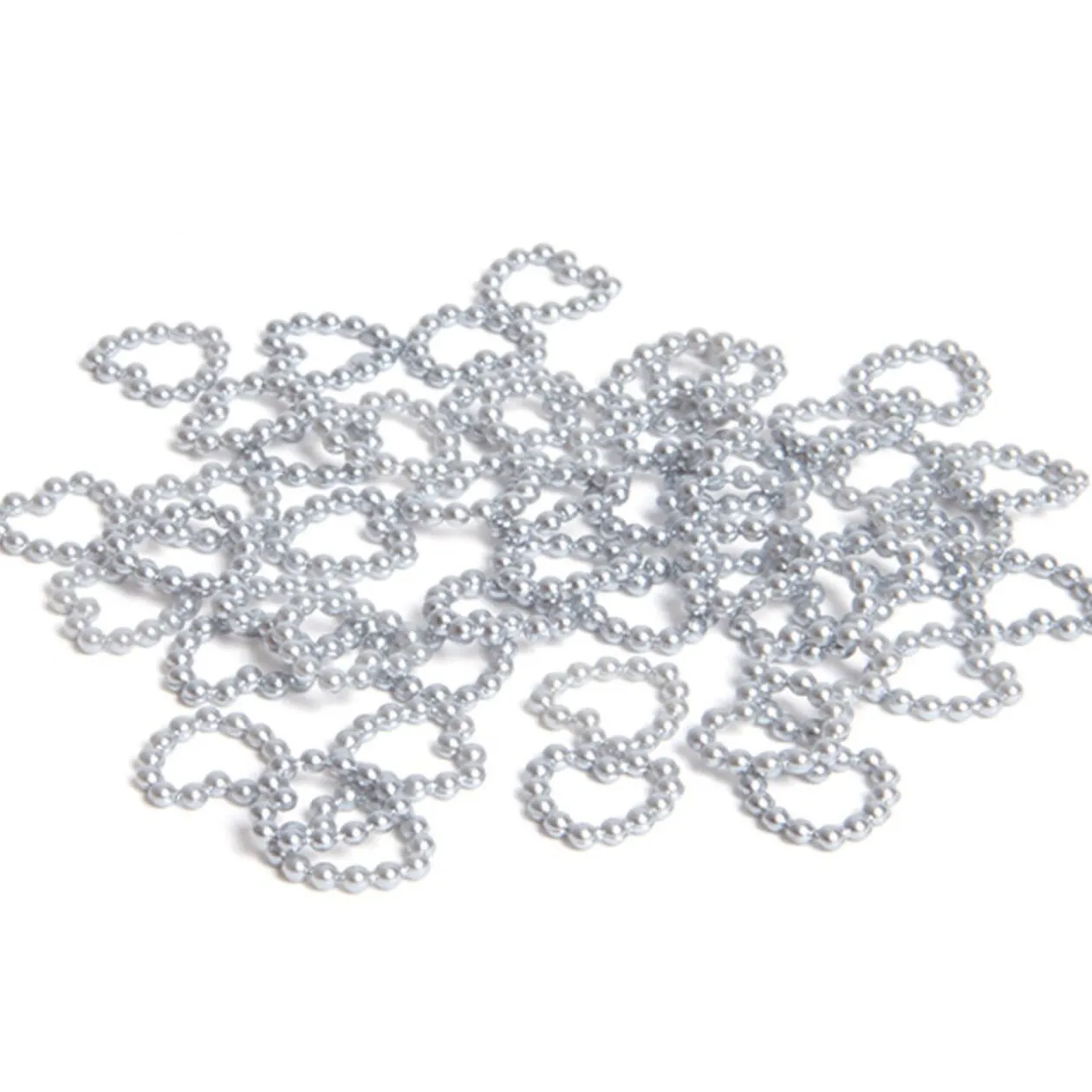 50 coeurs en perles argentées, L. 1 cm, plastique. Peut s’utiliser en décoration de table pour mariage ou autre évènement.