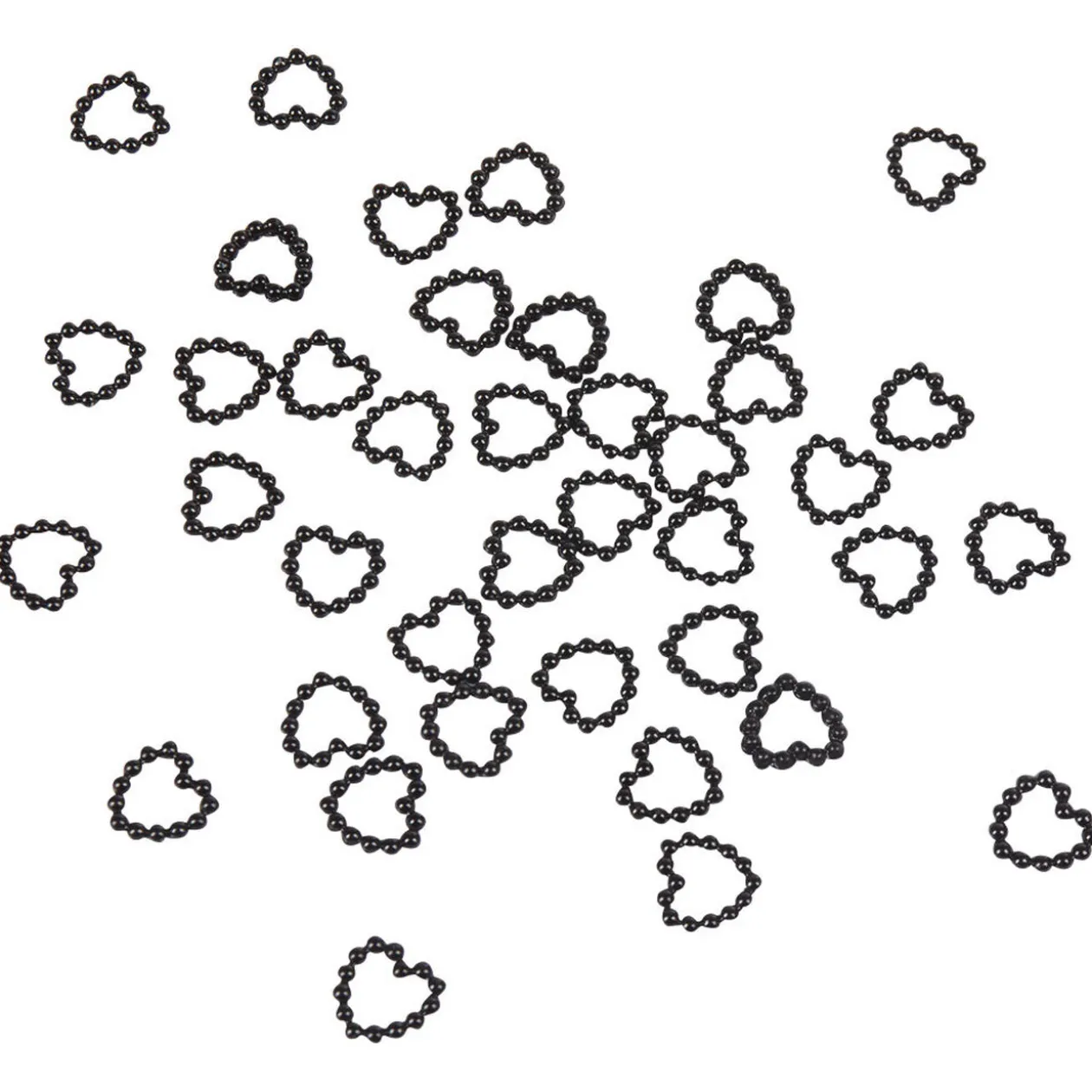 50 coeurs en perles noires, L. 1 cm, plastique.
