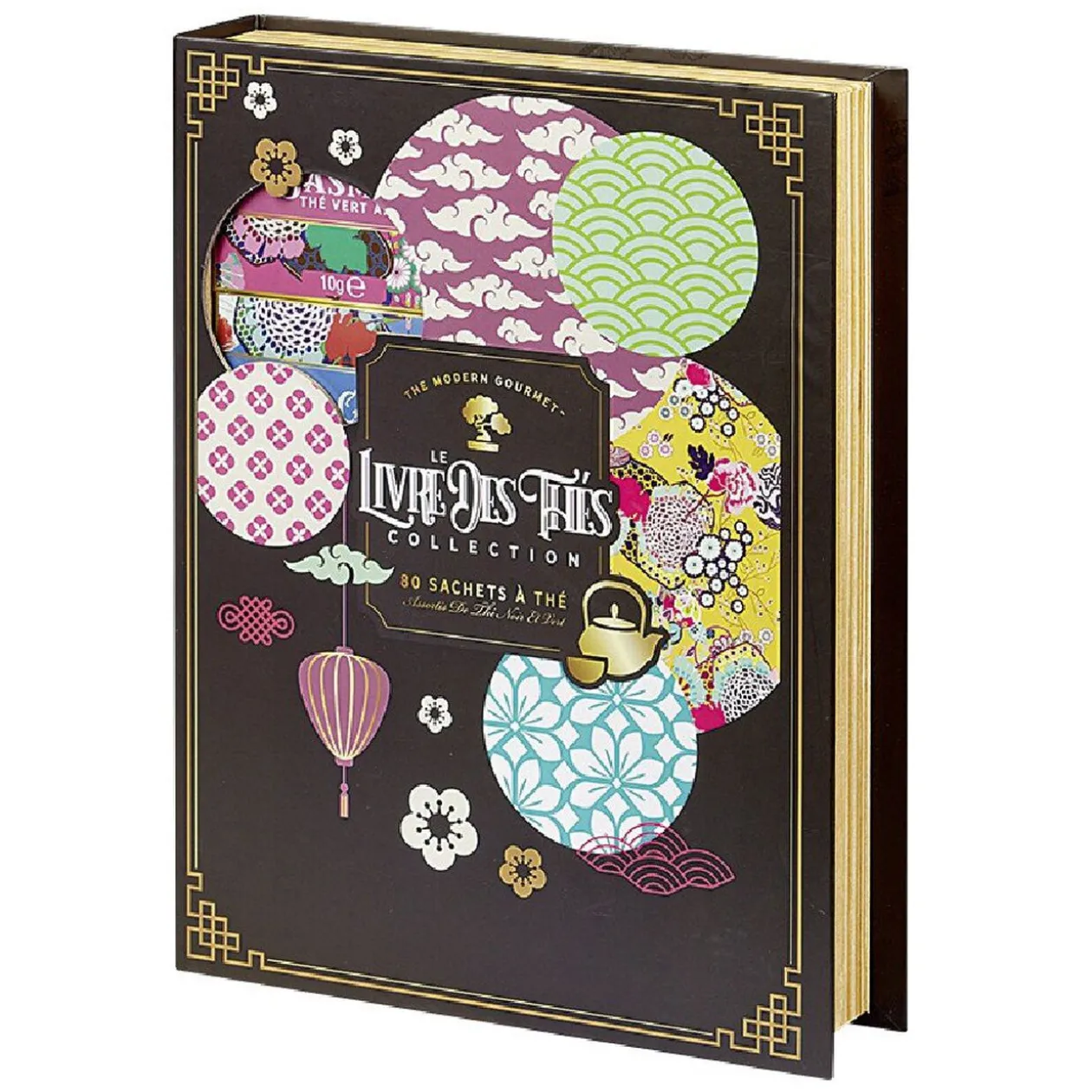 Coffret à thés en forme de livre avec 8 variétés différentes dans des bopites de 10 g chacune.