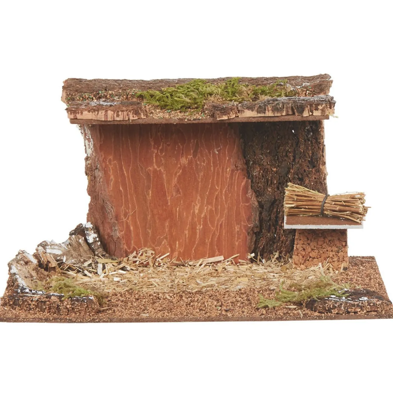 Crèche de Noël vide avec sol imitation terre, vendu sans santons.