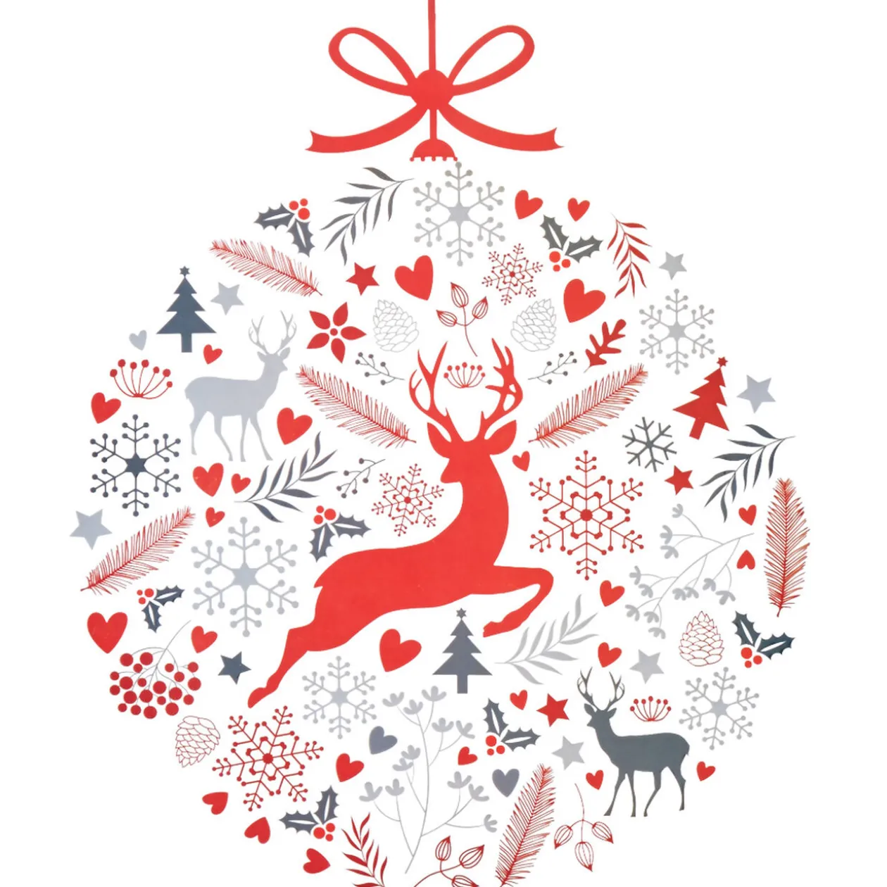Décoration de fenêtre électrostatique motif boule et rennes, Ø 30 cm, polyéthylène.