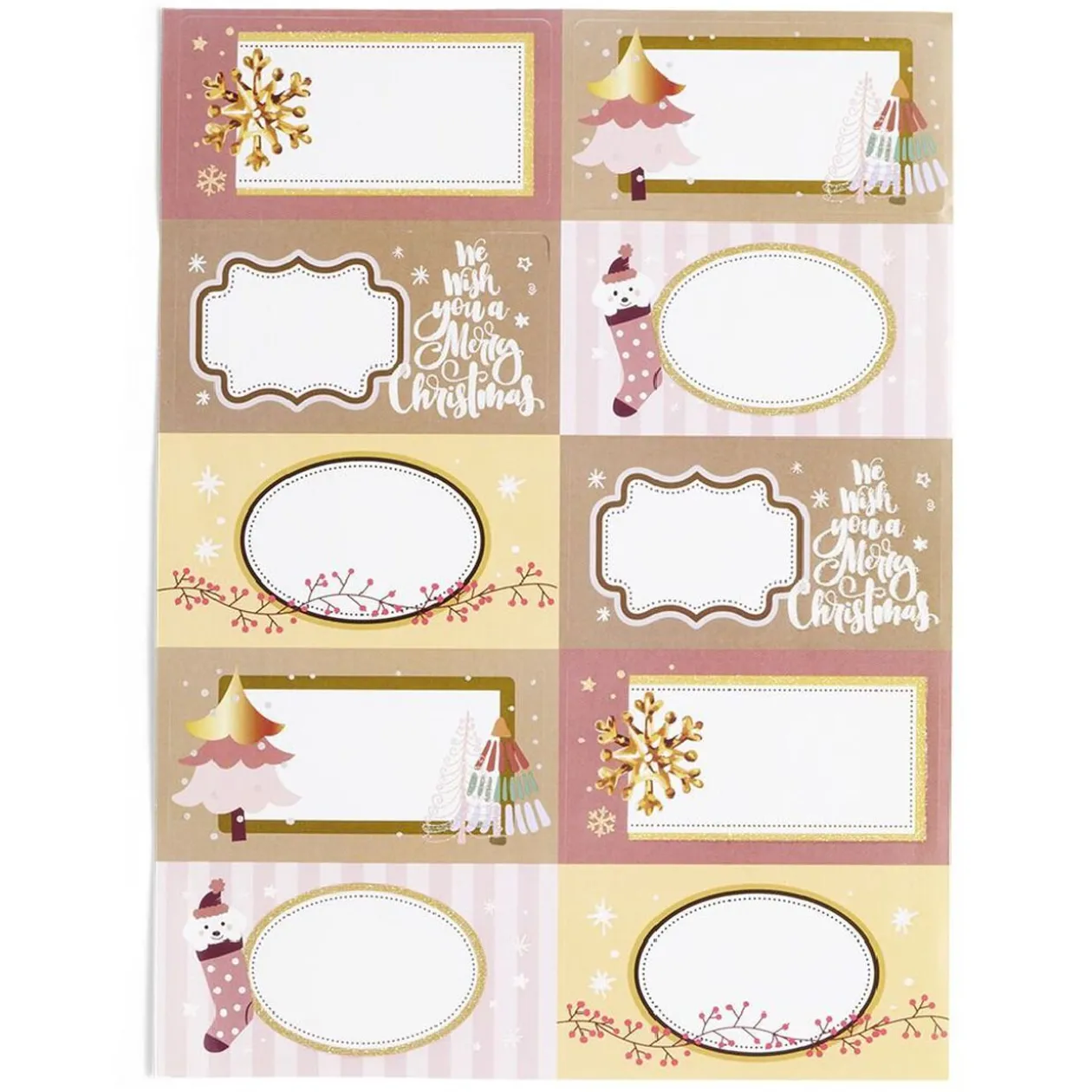 Identifiez les cadeaux de Noël de chacun avec cet ensemble de 10 étiquettes autocollantes aux motifs roses et dorés.