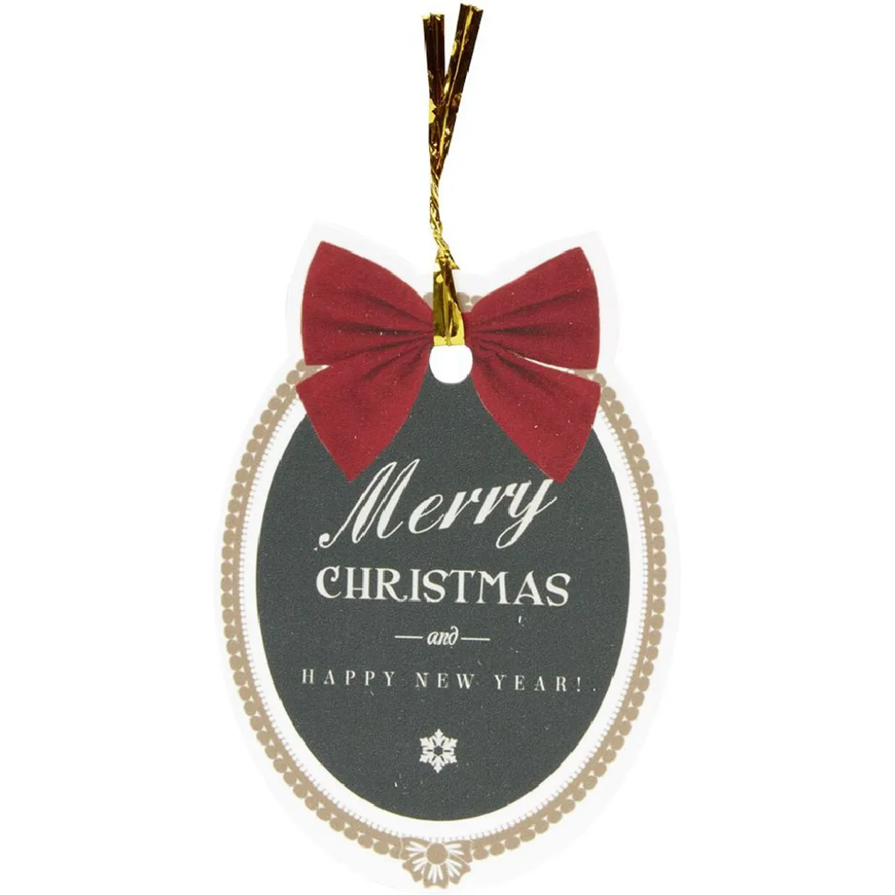 Lot de 6 étiquettes traditionnelles de différentes couleurs assorties de petits noeuds, idéales pour écrire les noms des destinataires de vos cadeaux de Noël.