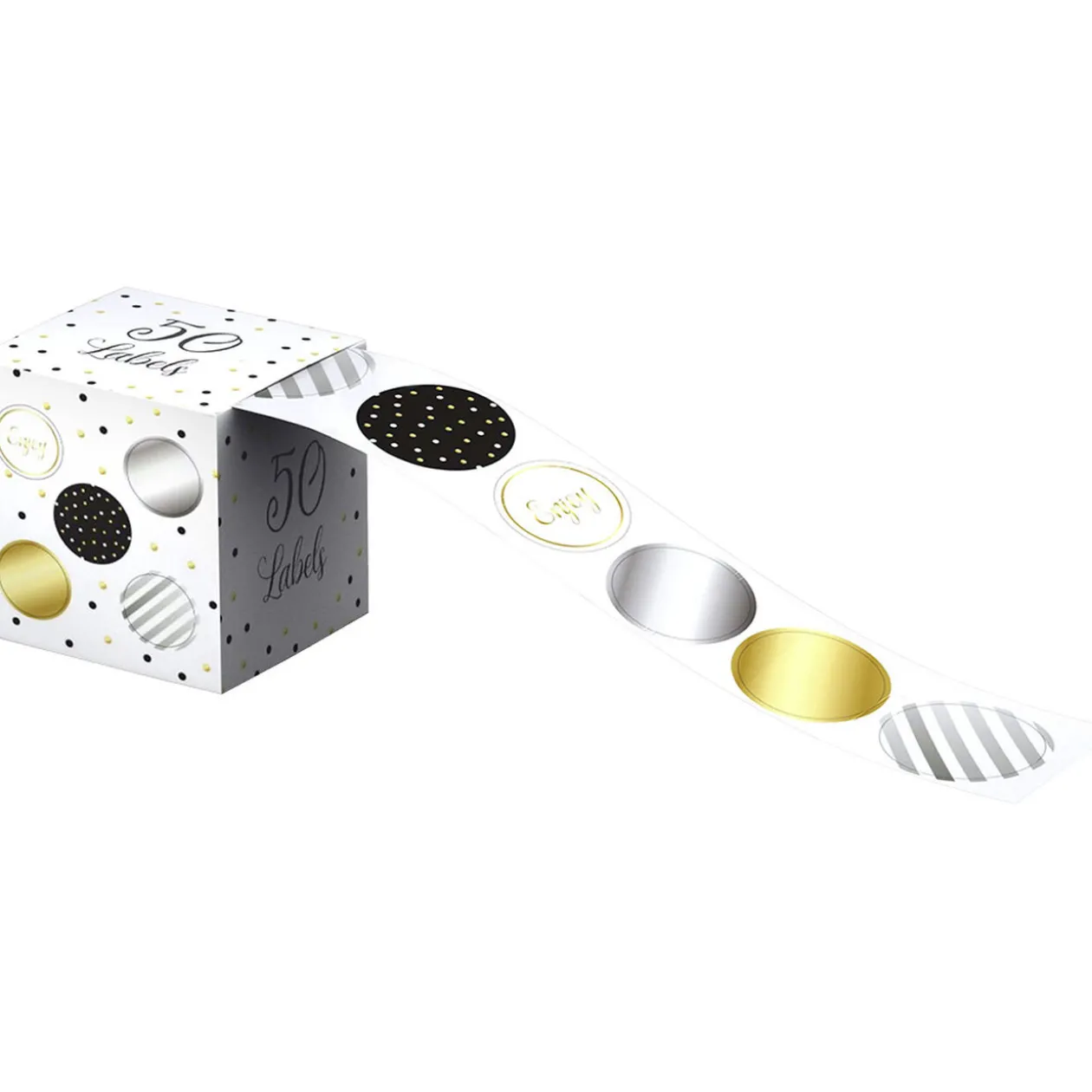 Lot de 50 étiquettes avec 5 décors différents pour agrémenter vos paquets cadeaux.