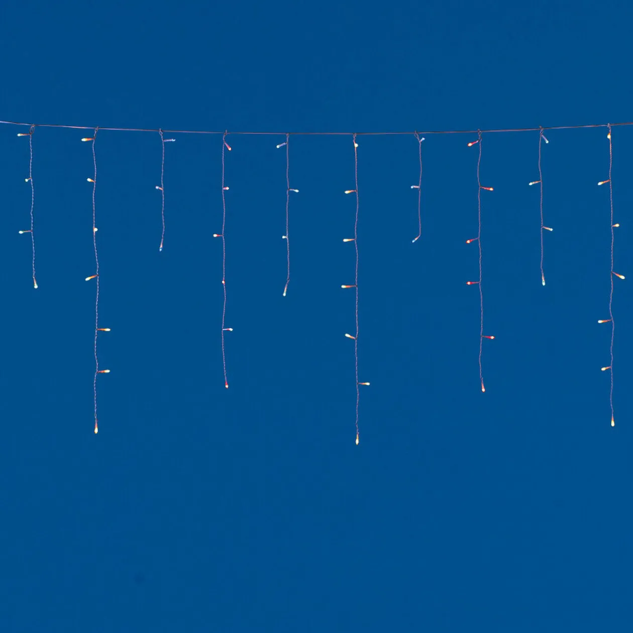 Bordure de toit lumineuse, usage extérieur et intérieur, 100 lucioles multicolores clignotantes, 2.4 m d’éclairage, 20 descentes jusqu’à 60 cm, L. câble 5 m..