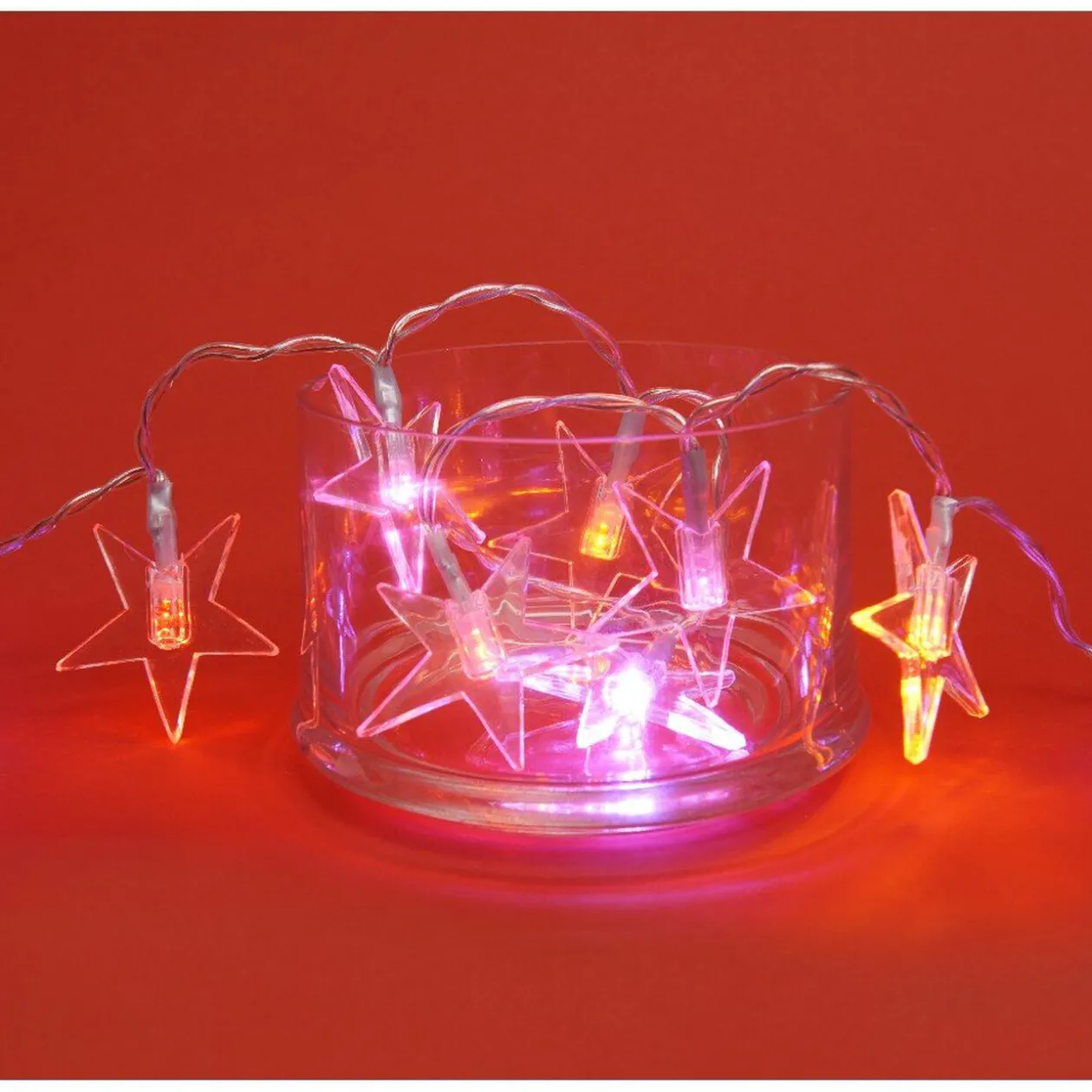 Guirlande électrique étoiles d’1 m d’éclairage, 15 LEDS multicolores, plastique, usage intérieur, fonctionne avec 1 pile LR06 non fournie..