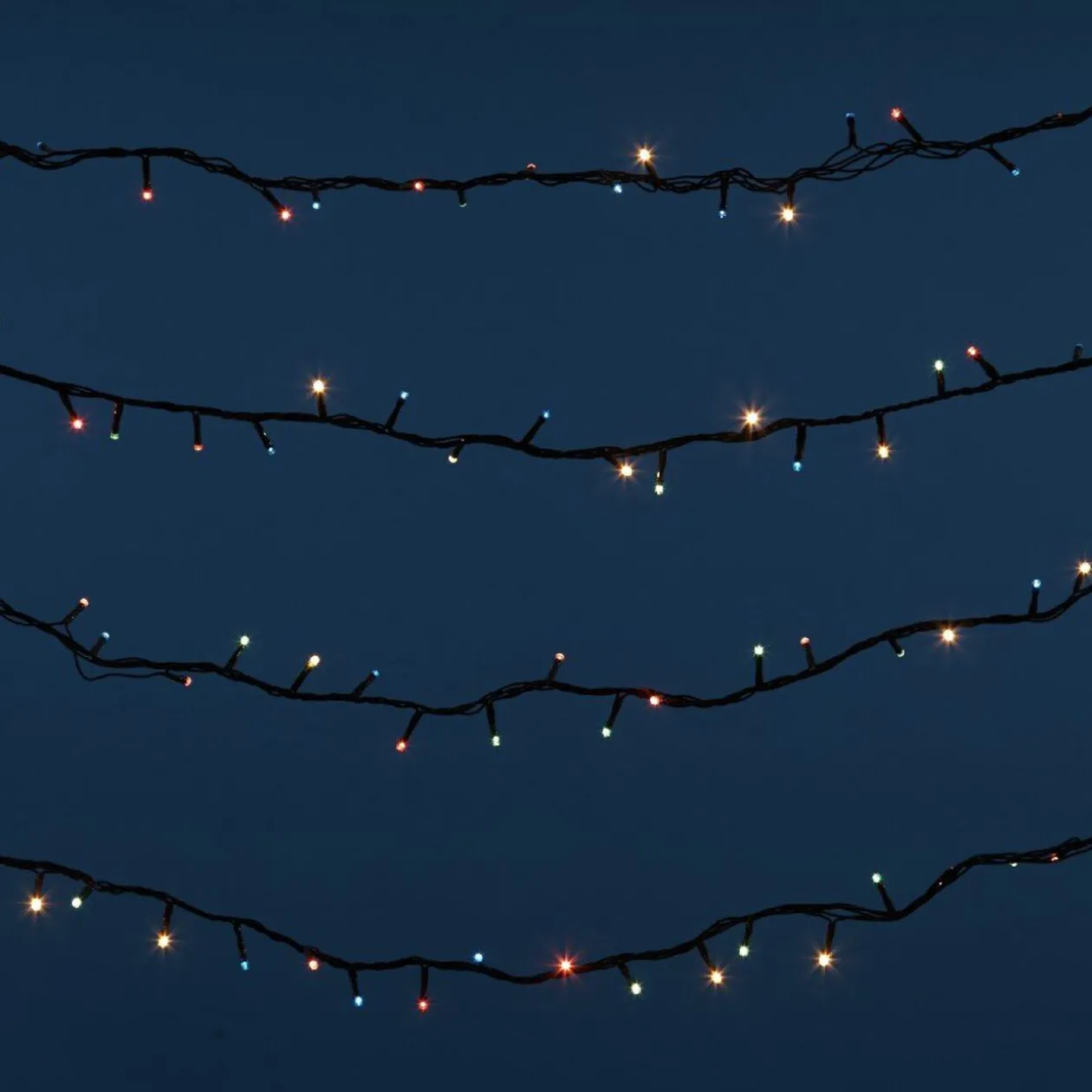 Guirlande électrique, 320 lucioles multicolores, 12.8 m d’éclairage, 8 jeux de lumières, 230 V, 50 Hz, fonctionne sur secteur. Usage extérieur. Tous les objets de décoration sont chez GIFI..