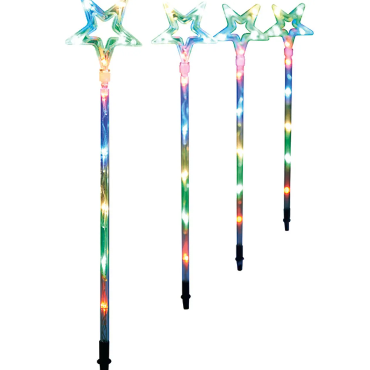 Guirlande électrique solaire 4 étoiles blanches à planter, h. 52 cm, plastique. 1,5 m d’éclairage, 40 leds multicolores fixes, usage extérieur. L. câble 1 m..