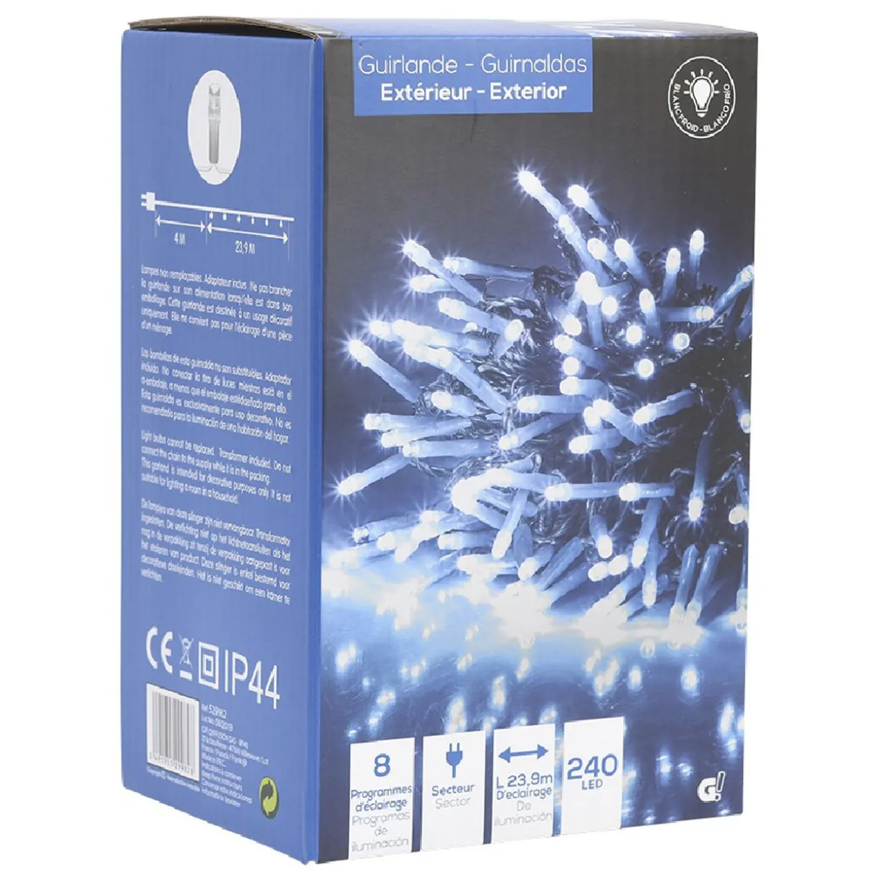 Envie d’une déco féérique pour Noël? Adoptez cette guirlande lumineuse pour l’extérieur de votre maison et obtenez un résultat époustouflant. Composée de 240 LED blanches, cette guirlande animera votre jardin dans une ambiance festive. Ce modèle de 27,9 mètres trouvera facilement sa place sur les murs, les portes ou les arbres.