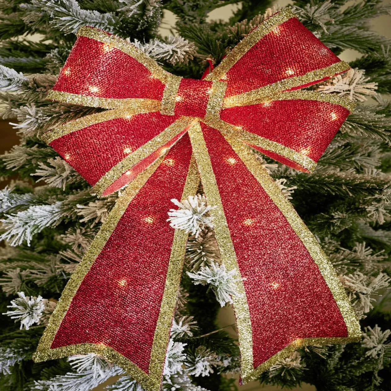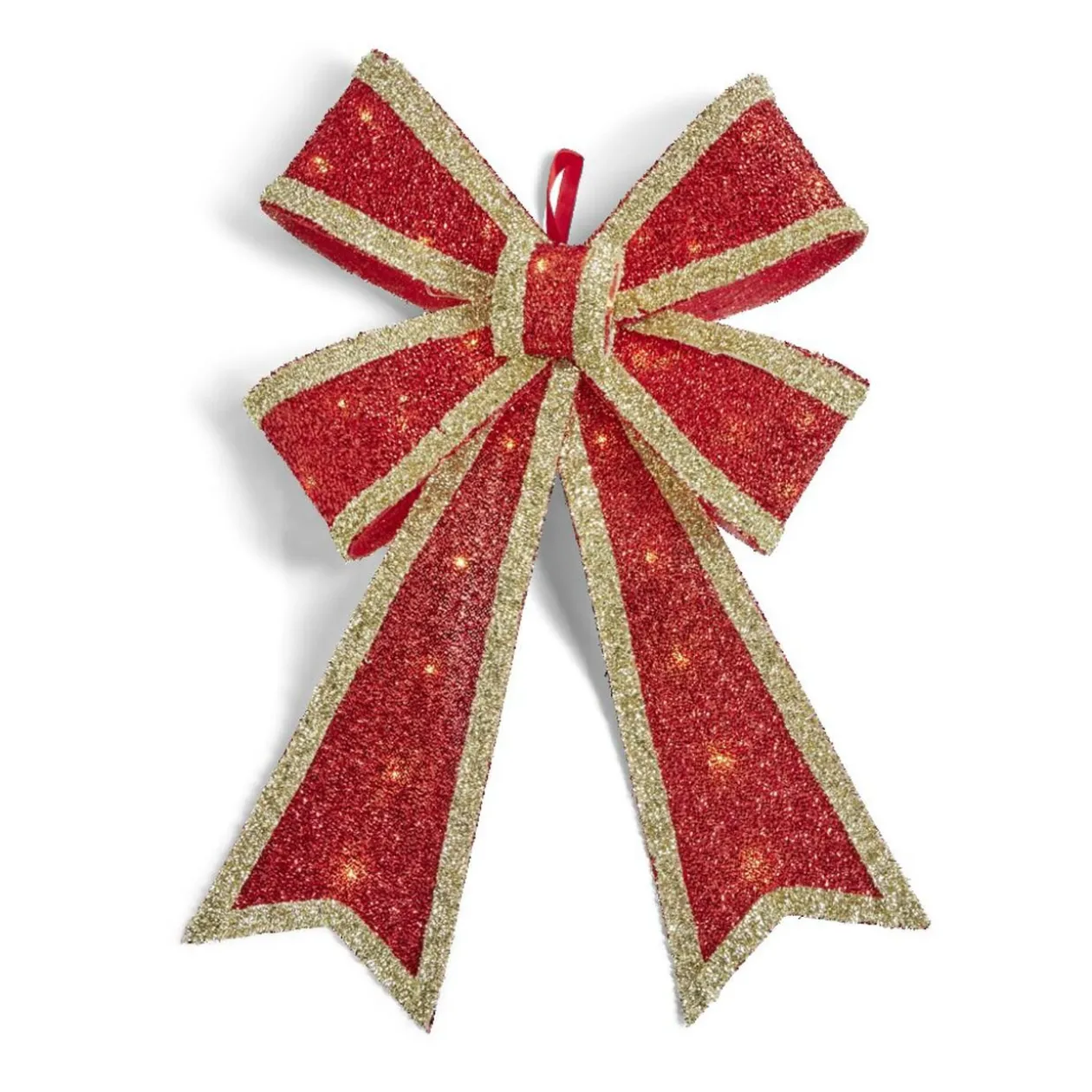Ajoutez une touche de magie à votre décoration avec ce noeud lumineux rouge et doré doté de 30 LEDs blanc chaud.