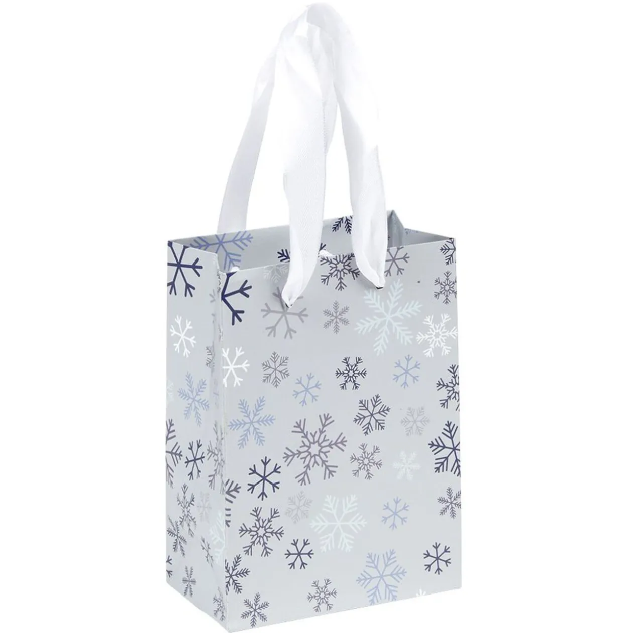Sac cadeau de Noël taille S avec une note jardin d’Hiver blanc, bleu clair ou argenté.