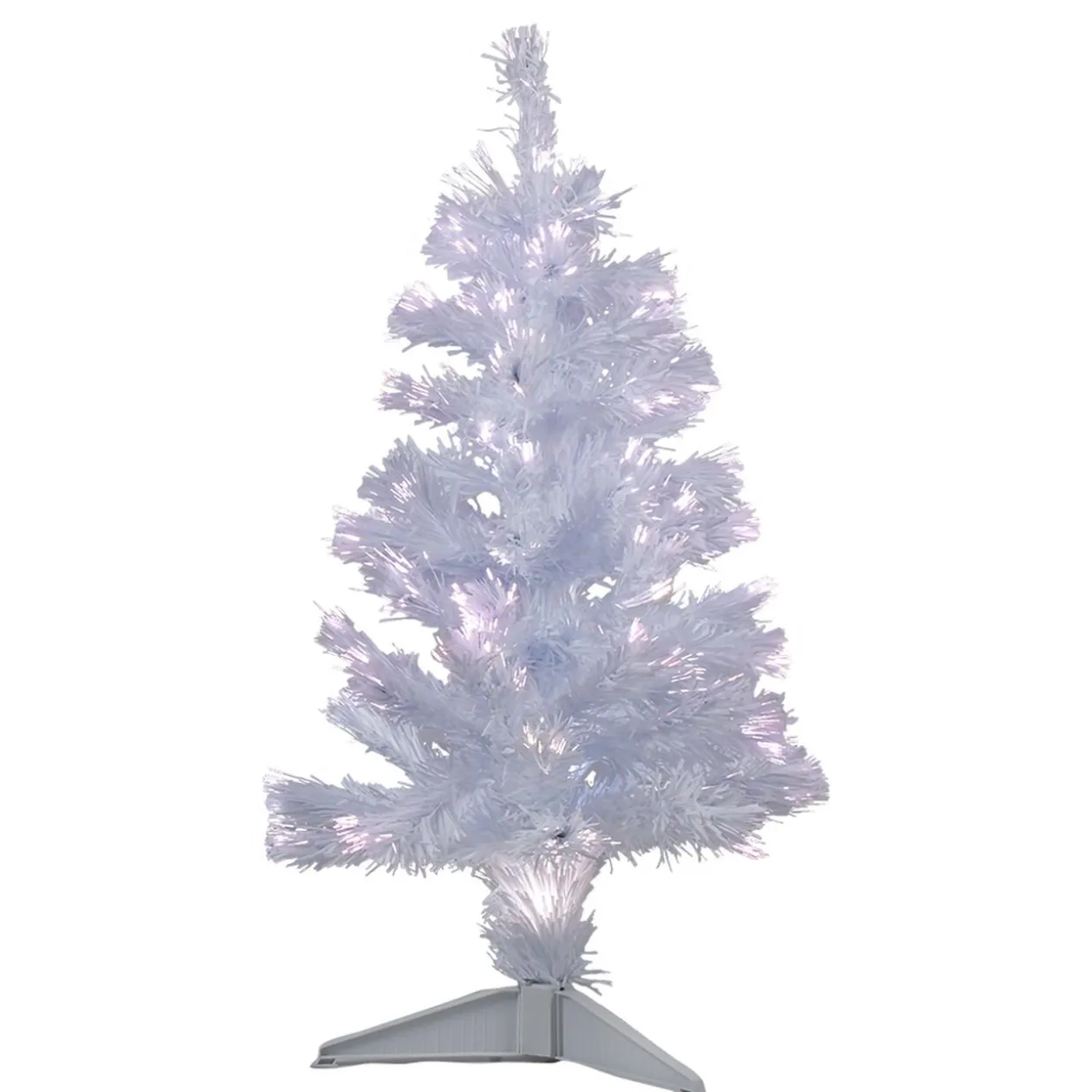Sapin de Noël blanc à fibres optiques de 90 cm de hauteur doté de 12 LED multicolores clignotantes.