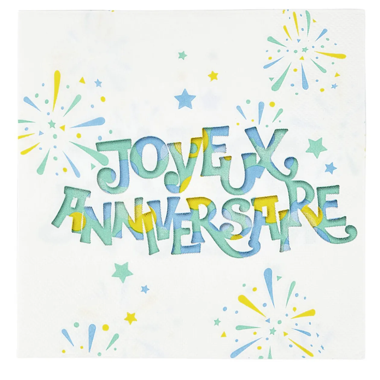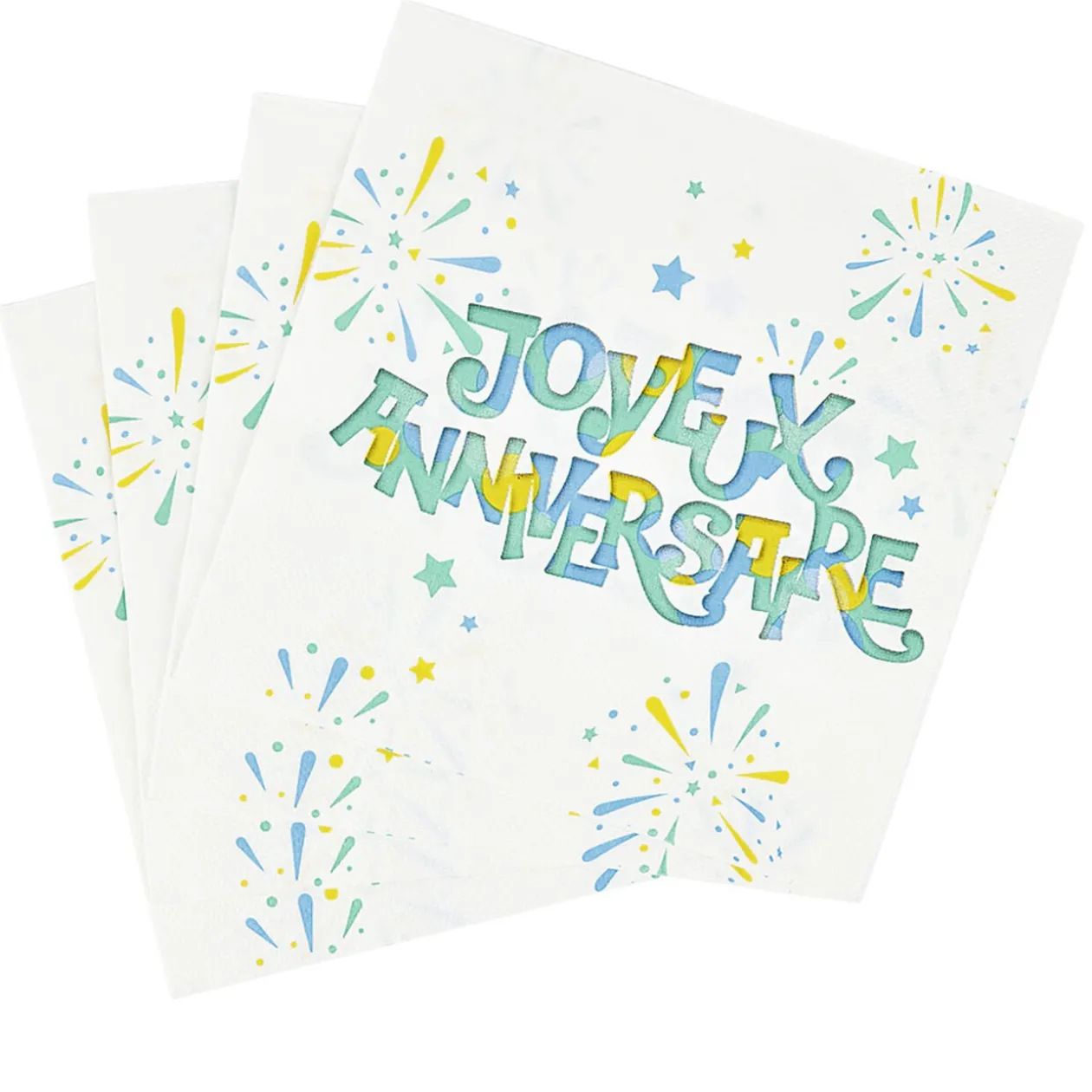 Lot de 16 serviettes en papier au motif feux d’artifice avec l’inscription « Joyeux anniversaire ».