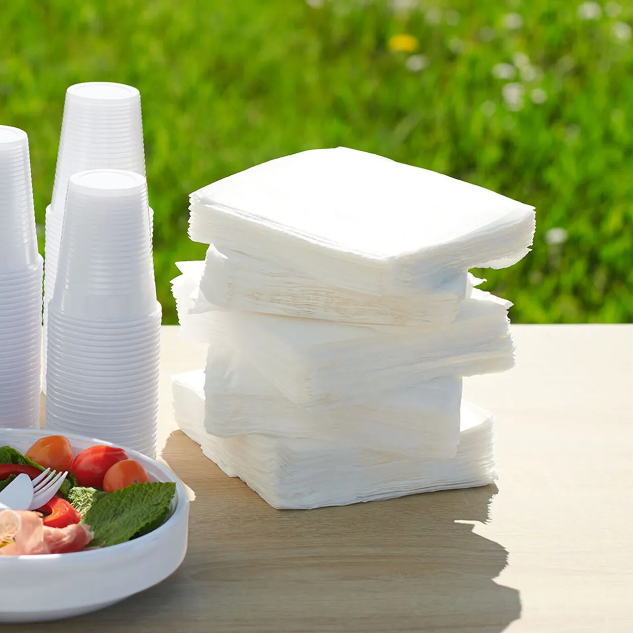 Lot de 300 serviettes jetables blanches de dimensions 29×30 cm, idéal pour les pique-niques et tous vos repas en extérieur!