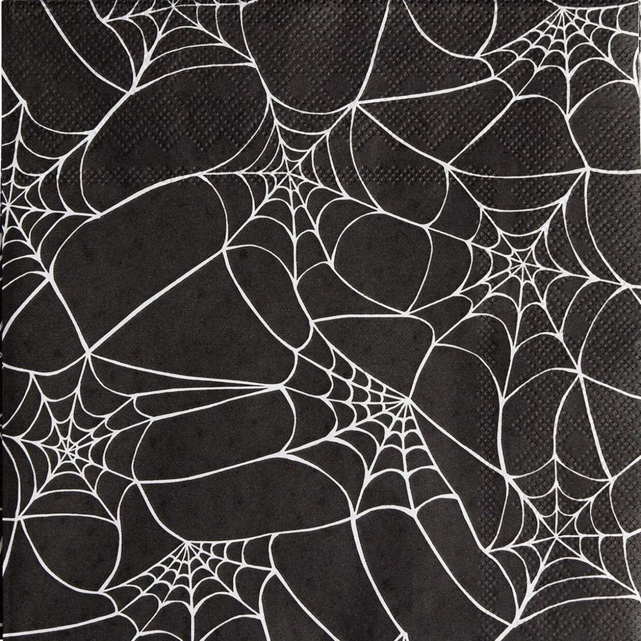 Lot de 20 serviettes en papier de couleur noire avec imprimé toile d’araignée blanche, idéales à l’occasion d’Halloween.