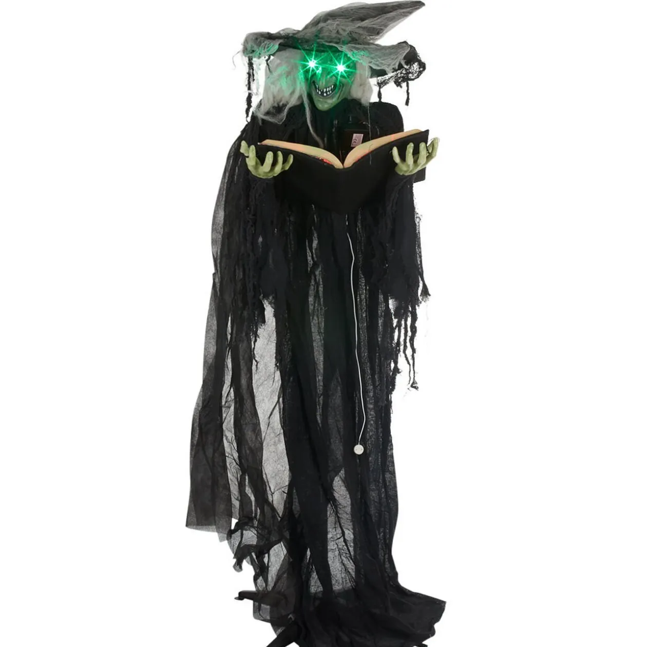 Cette sorcière lumineuse et sonore semble préparer un mauvais sort avec son livre entre les mains…
