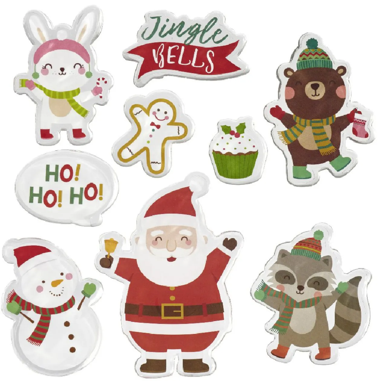 Égayez vos fenêtres avec ce lot de stickers gel sur le thème de Noël: père-Noël, Messages, Pain d’épice, Lapin, ourson, Bonhomme de neige, Renard . Colorés, simples à coller et réutilisables, ces motifs de différentes tailles et de différentes couleurs visibles de dehors participeront à la décoration aussi bien intérieure qu’ extérieure de votre maison.