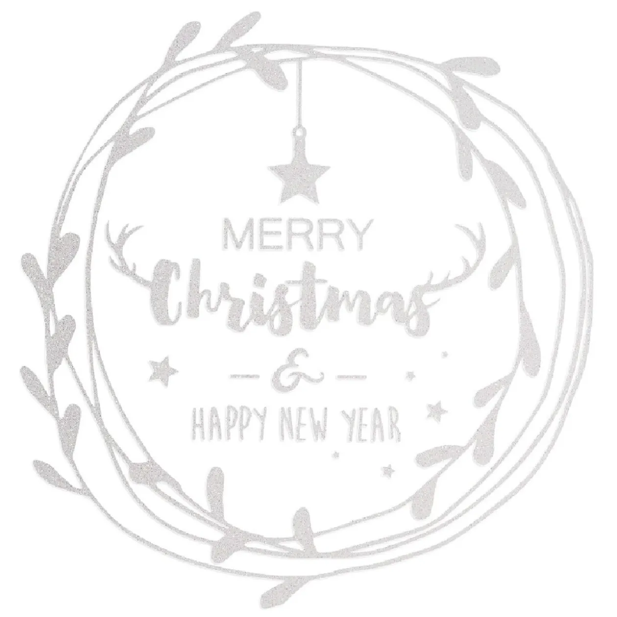 Stickerde Noël pour fenêtre design couronne blanc.