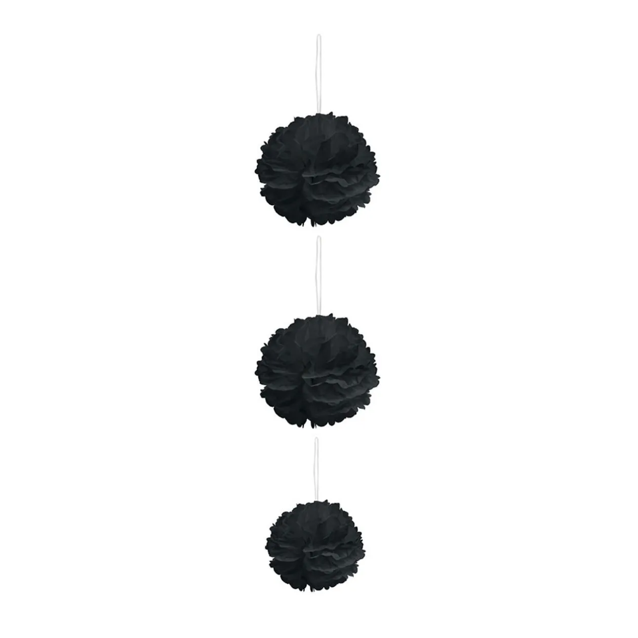 Suspension composée de 3 boules en papier effet chiffon de couleur noire.