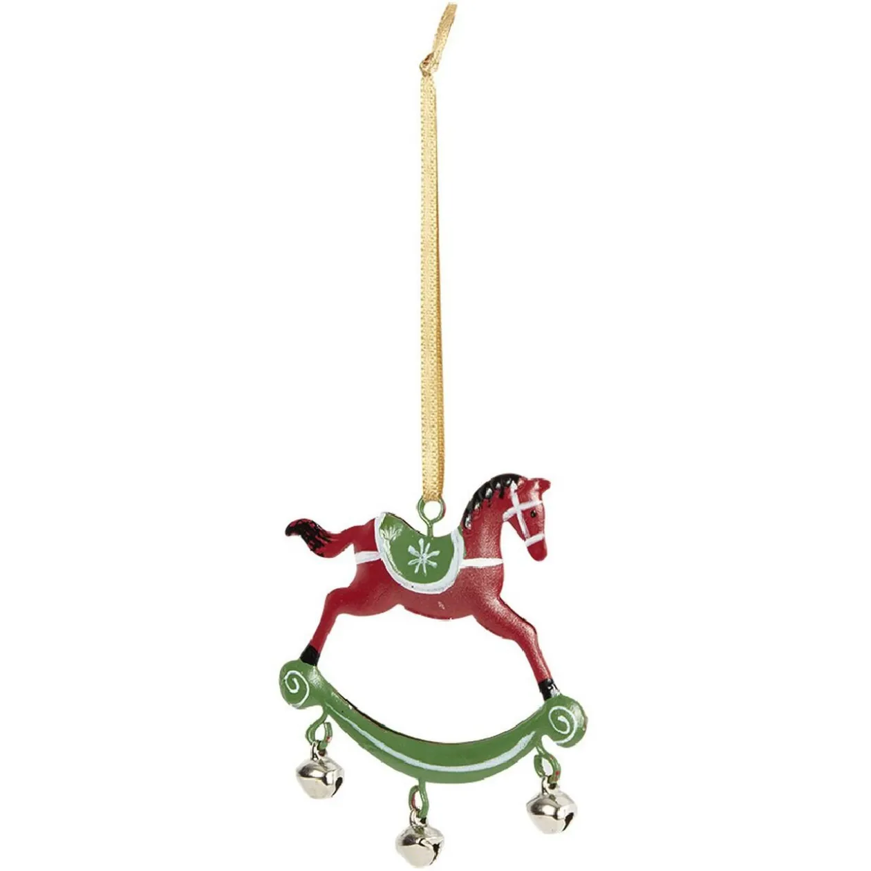 Suspension en bois coloré représentant un cheval à bascule pour un sapin de Noël au look vintage et magique!