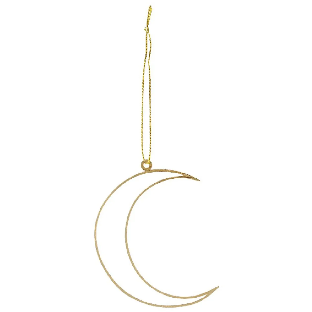 Décoration de Noël à suspendre en forme d’étoile ou lune en métal doré.