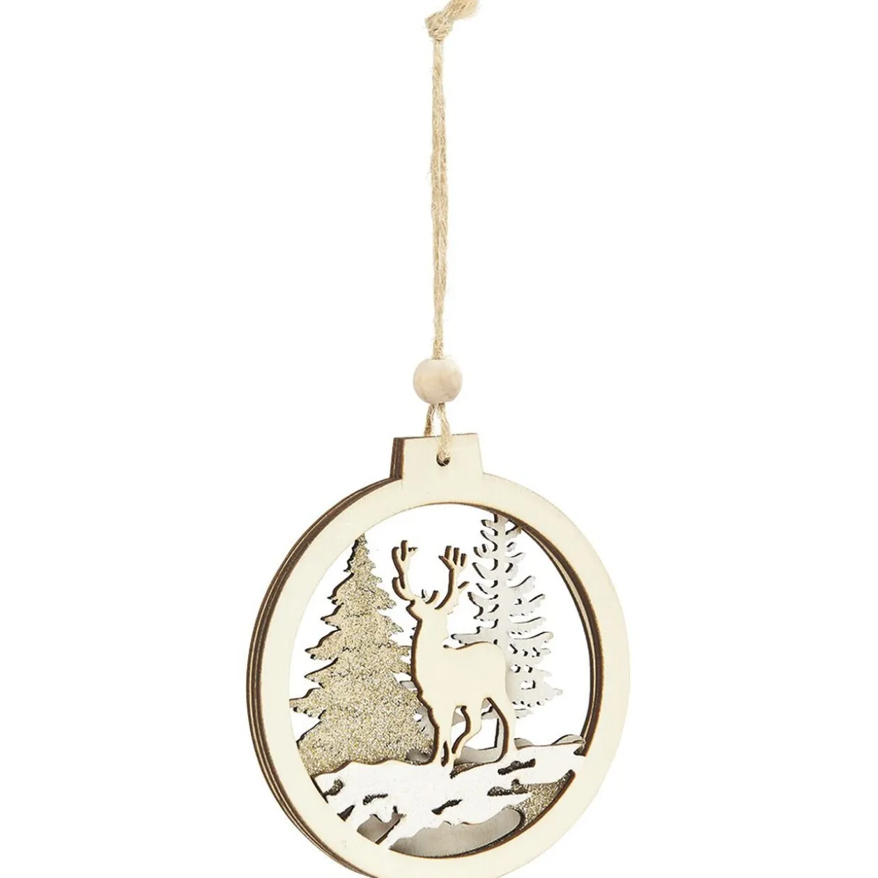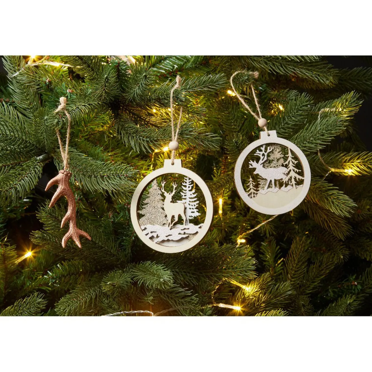 Cette suspension en bois au décor naturel sera du plus bel effet sur votre sapin.