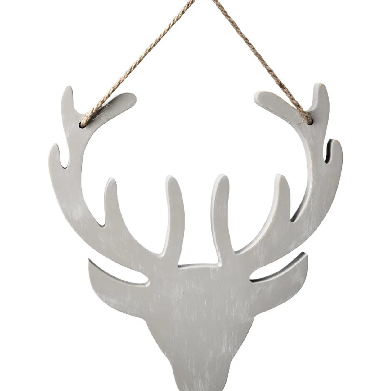 Suspension en forme de tête de renne beige grisé, idéal pour apporter un esprit nature à votre décoration de Noël.