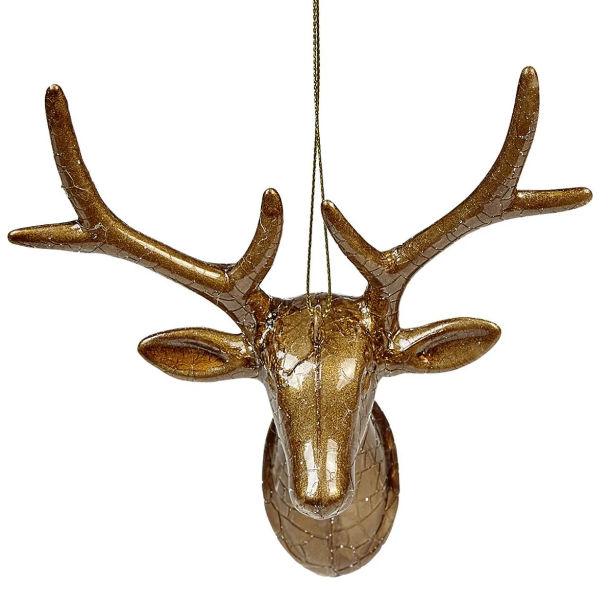 Optez pour cette suspension déco en forme de tête de renne en plastique marrron et à l’effet craquelé, parfait pour une décoration de Noël tendance et épurée !