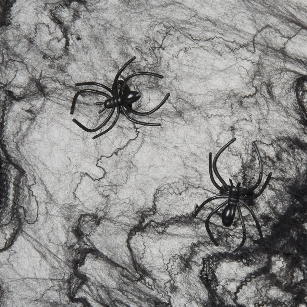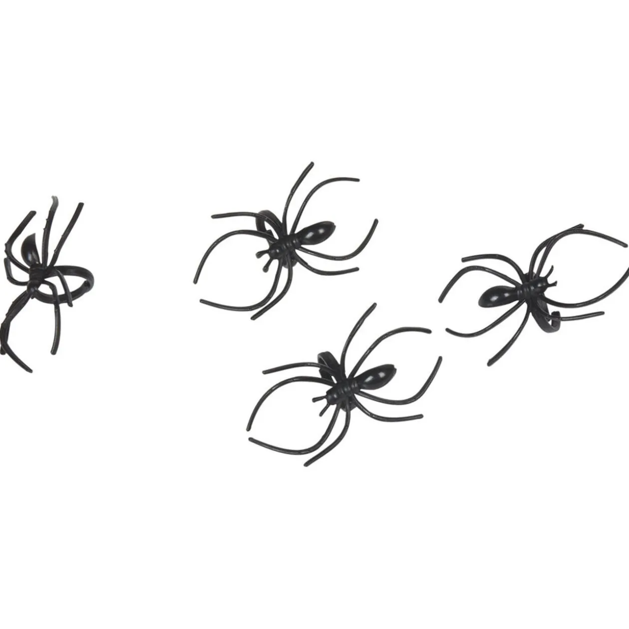 Fêtez Halloween avec ces 4 araignées noires et leur toile noire, idéal pour la décoration de votre soirée.