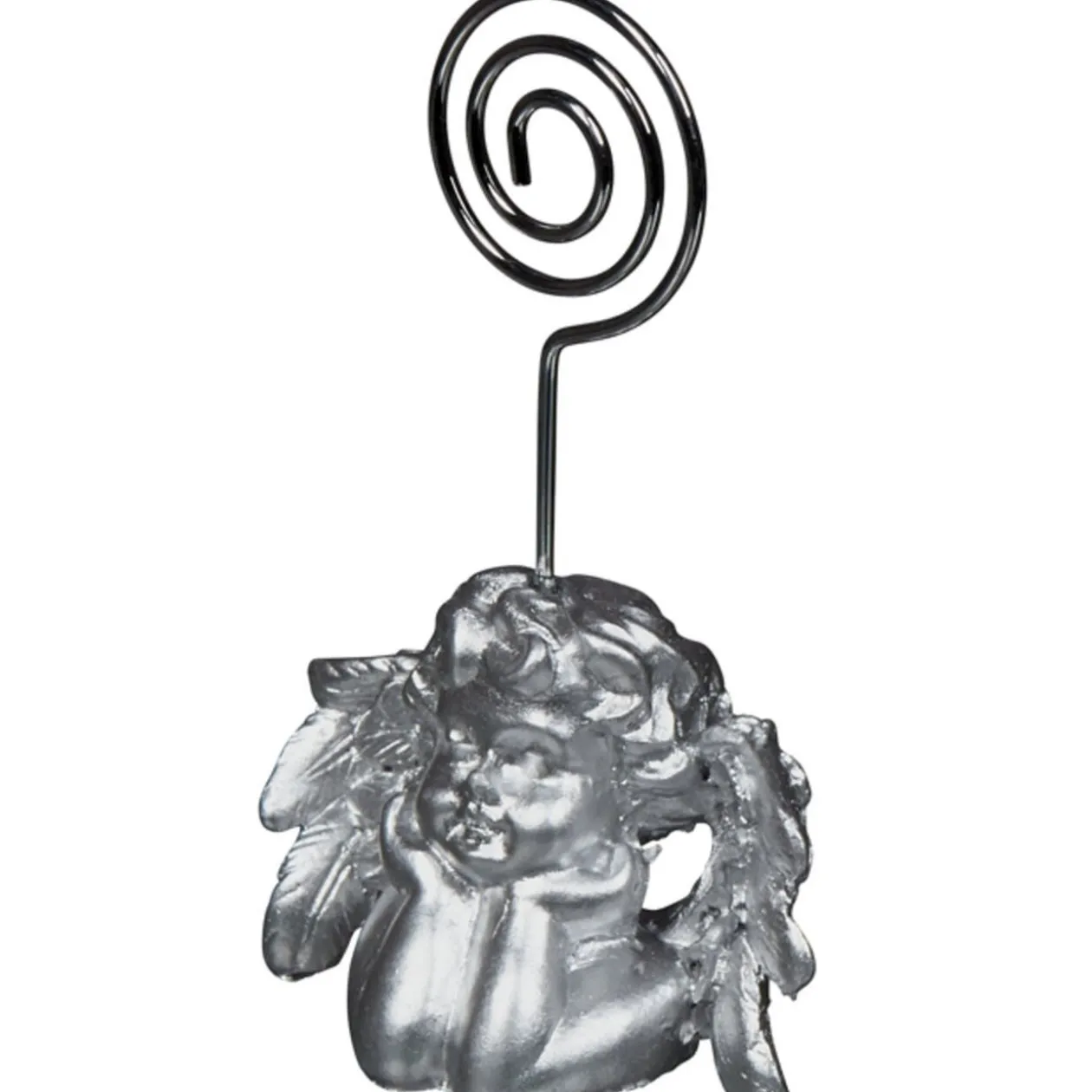 Ange marque-place argenté, dim. h.9,5×5,5 cm, métal et résine. Peut s’utiliser en décoration de table ou marque-place pour mariage, baptême ou autre évènement.