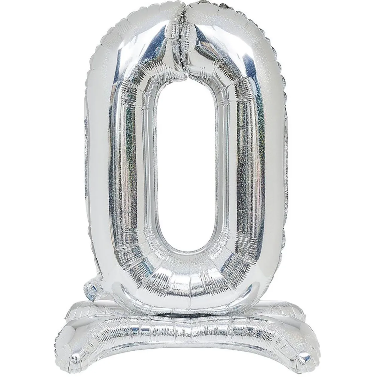 Ballon doré ou argenté en forme de chiffre 0 avec support.