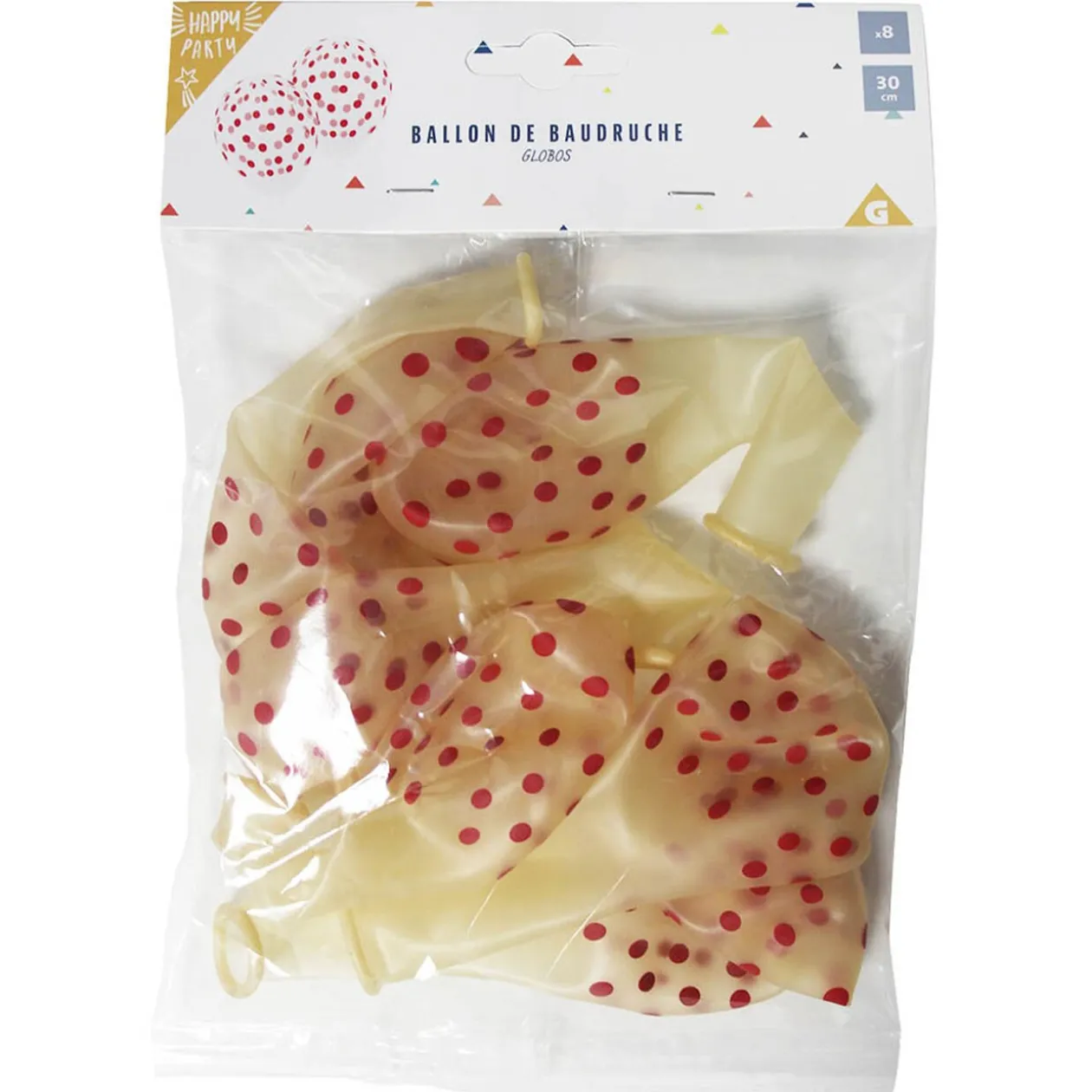 Lot de 8 ballons de baudruche blancs motifs pois rose et rouges. Idéal pour organiser un évènement festif !