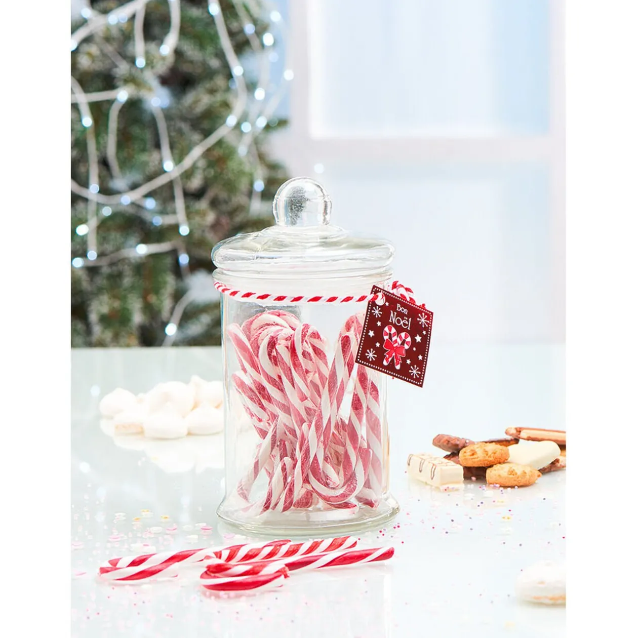 Pour faire plaisir aux petits et grands gourmands, cette bonbonnière garnie de sucre d’orge trouvera facilement sa place sur votre table.