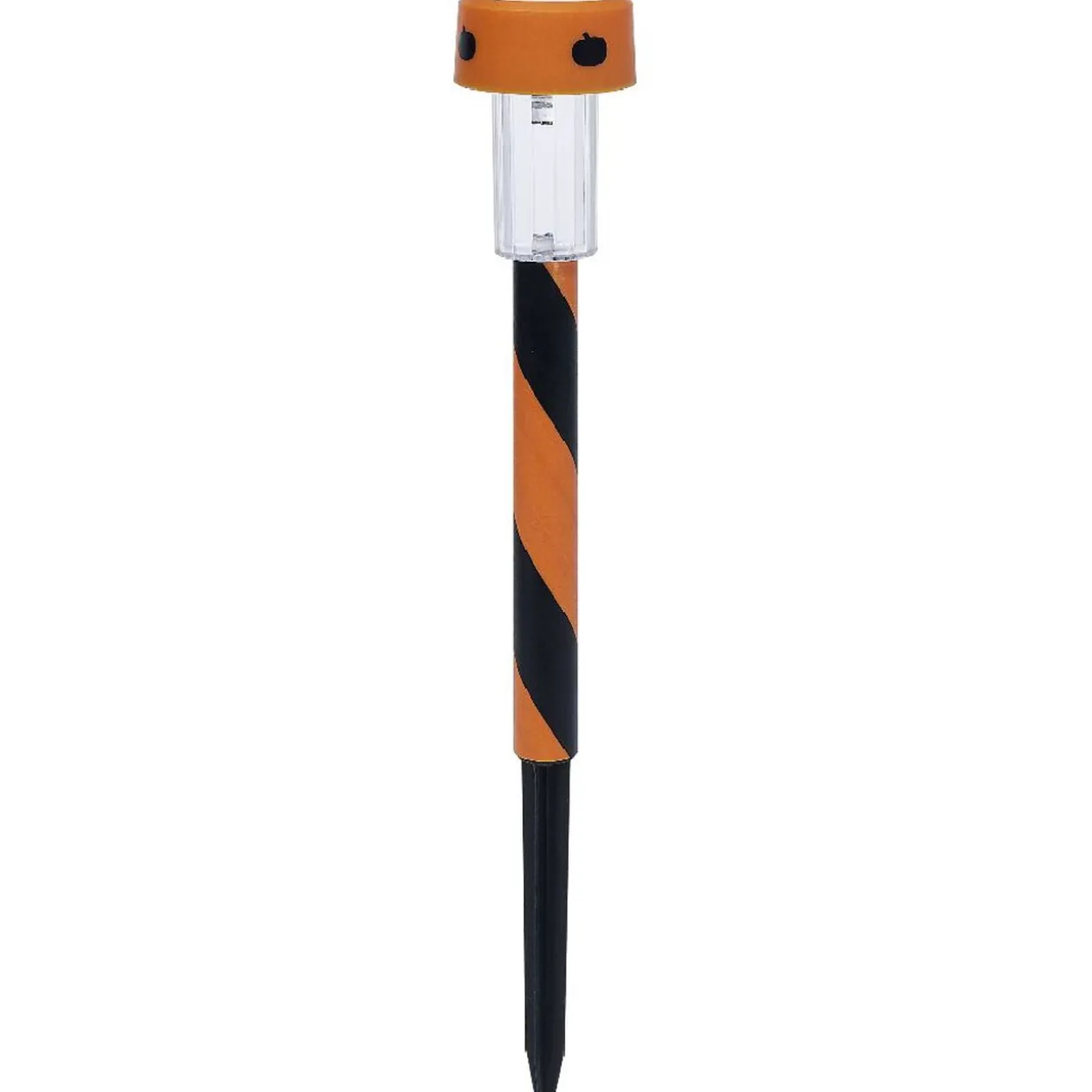Borne LED solaire à planter, de coloris orange et noir avec éclairage blanc froid, pour peaufiner votre décoration extérieure le soir d’Halloween !