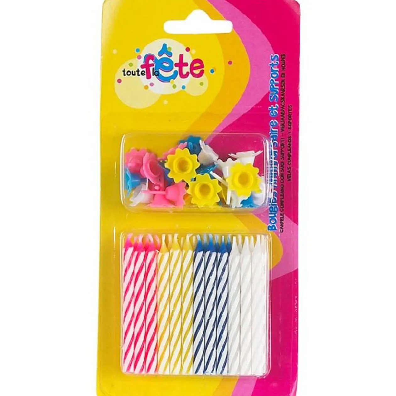 24 bougies anniversaire, h. 6.3 cm, supports inclus.