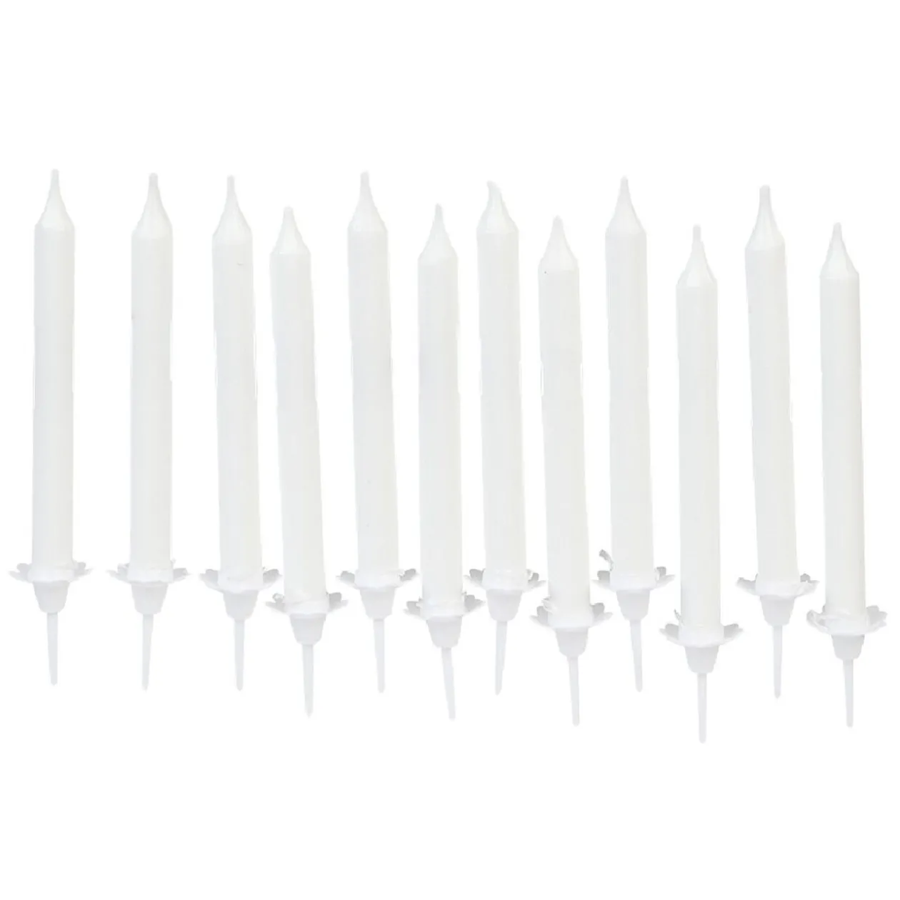 Lot de 12 bougies anniversaire et support blanc x 12.