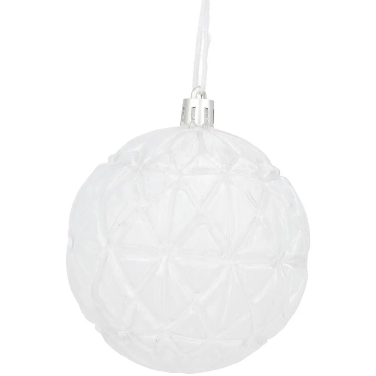 Boule de Noël blanche ou bleue avec un effet givré à suspendre à votre sapin.