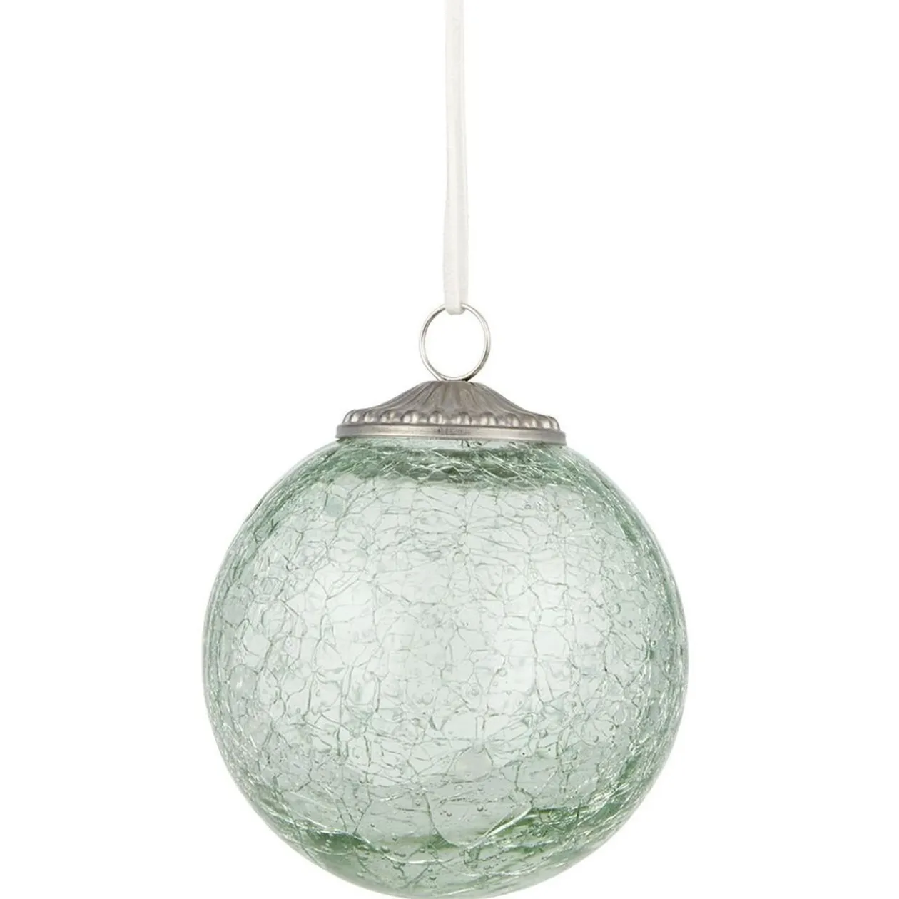 Boule de Noël en verre avec un effet craquelé à suspendre au sapin pour un Noël givré.