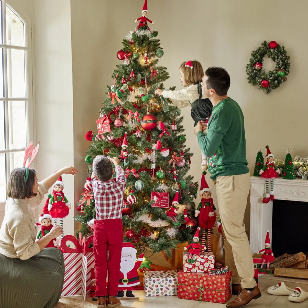 Boule de Noël motif spirale et bonnet Père Noël ou lutin Ø8cm H11cm